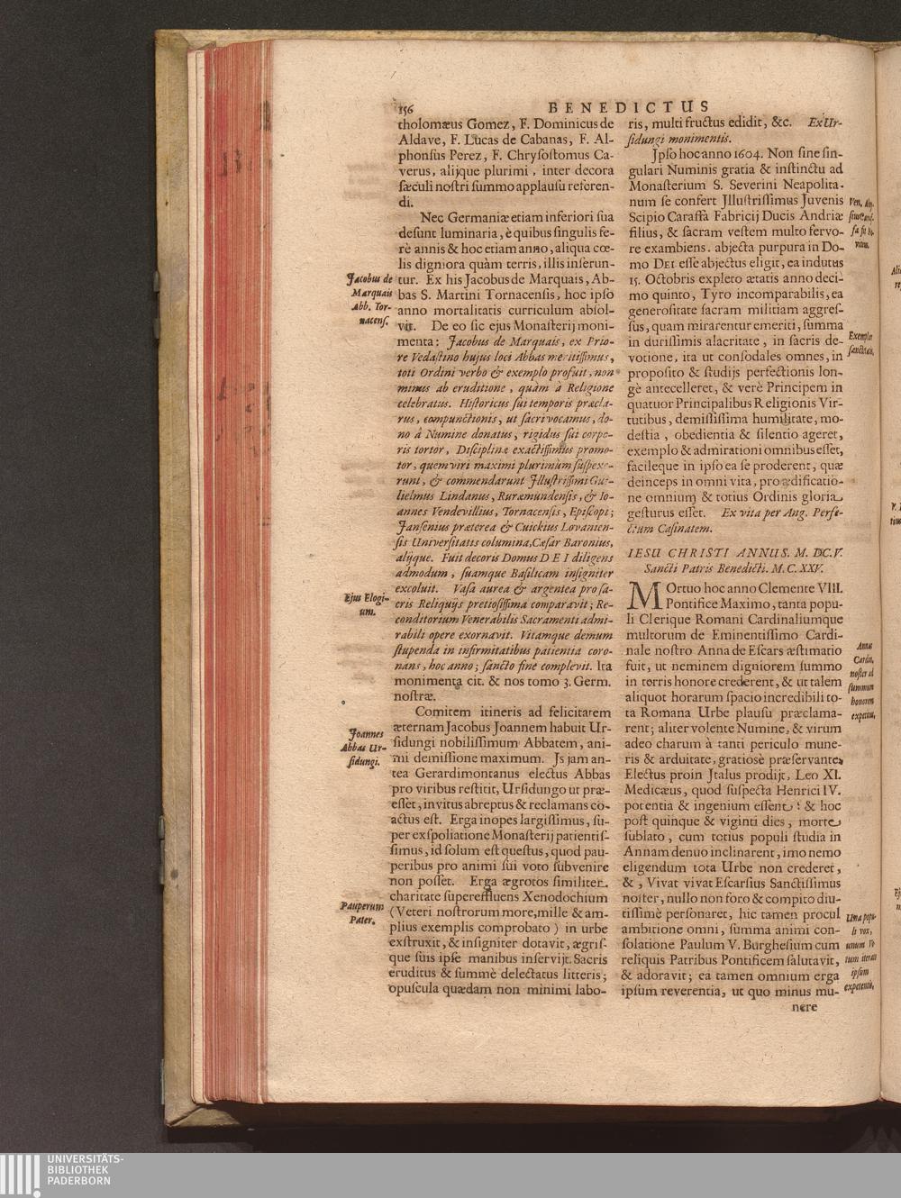 Benedictus Redivivus Hoc est: Benedictinj Ordinis Vetustißimi Amplißimique, Nostra, ac supera ætate Jmmarcescibilis Vigor, ac Viror : Anniversariâ Vernantiâ Chronologicè comprobatus, ac demonstratus Ab anno Christi M. D. Ad Præsentem Usque Ætatem, Et Annos Nostros, Jn Quo ... Operationes Jn Effusione Mirabili sui Spiritus ... quam compendiosissimè exhibe[n]tur / Opera, & Studio R. P. F. Gabrielis Bucelini Ascetæ Benedictini Imperialis Monasterij VVeingartensis Prioris S. Joannis Bapt. in Oppido Rhætiæ Superioris Veldkirchensi