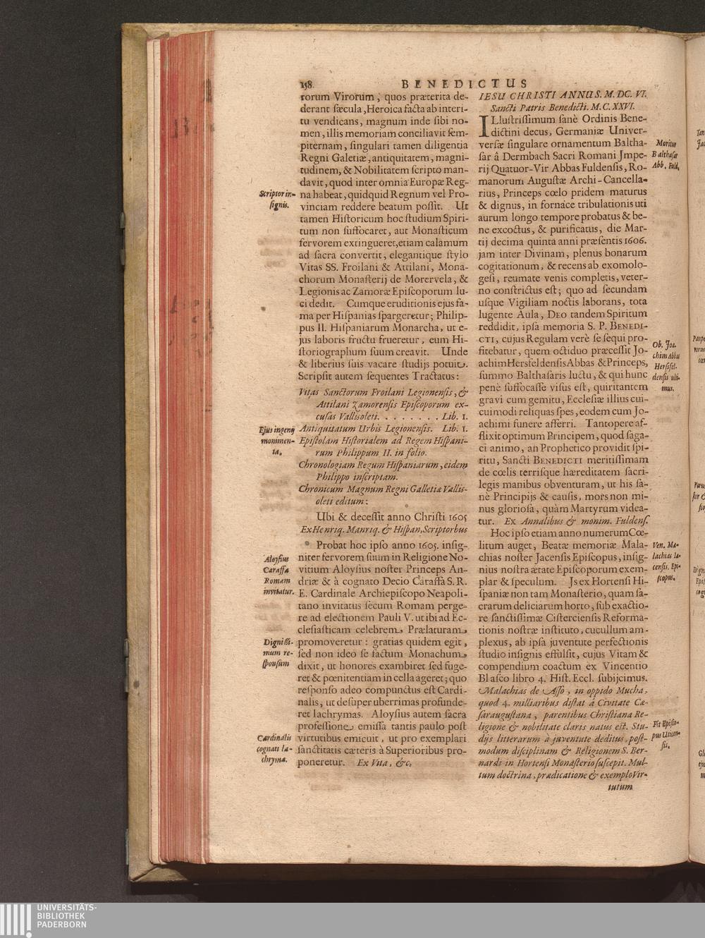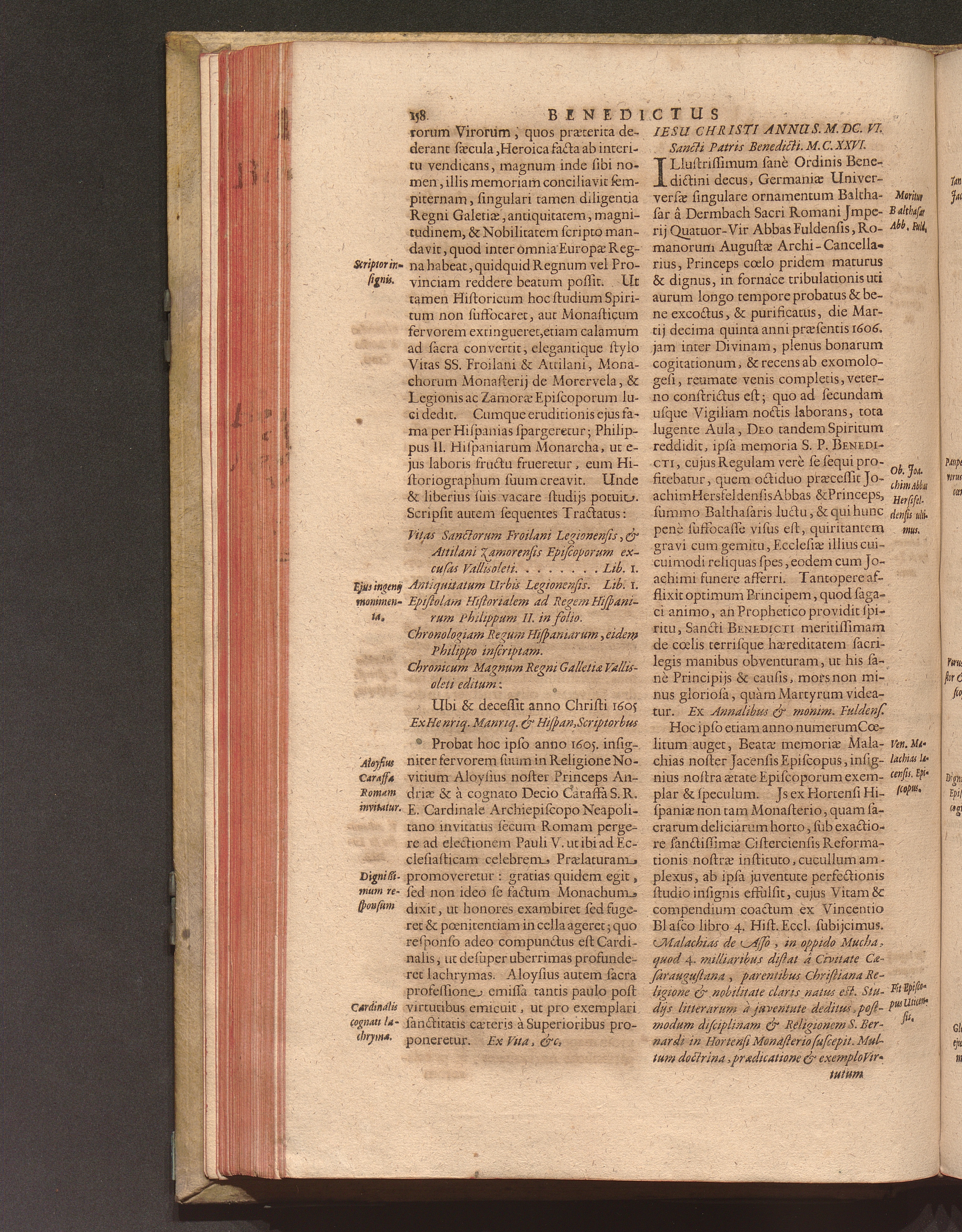 Benedictus Redivivus Hoc est: Benedictinj Ordinis Vetustißimi Amplißimique, Nostra, ac supera ætate Jmmarcescibilis Vigor, ac Viror : Anniversariâ Vernantiâ Chronologicè comprobatus, ac demonstratus Ab anno Christi M. D. Ad Præsentem Usque Ætatem, Et Annos Nostros, Jn Quo ... Operationes Jn Effusione Mirabili sui Spiritus ... quam compendiosissimè exhibe[n]tur / Opera, & Studio R. P. F. Gabrielis Bucelini Ascetæ Benedictini Imperialis Monasterij VVeingartensis Prioris S. Joannis Bapt. in Oppido Rhætiæ Superioris Veldkirchensi