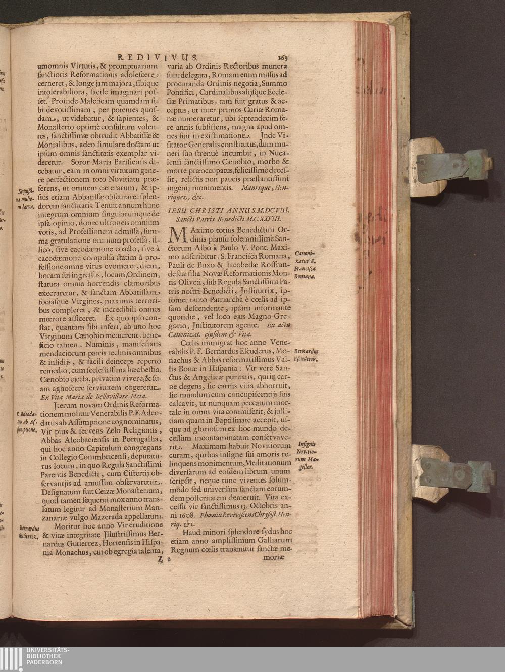 Benedictus Redivivus Hoc est: Benedictinj Ordinis Vetustißimi Amplißimique, Nostra, ac supera ætate Jmmarcescibilis Vigor, ac Viror : Anniversariâ Vernantiâ Chronologicè comprobatus, ac demonstratus Ab anno Christi M. D. Ad Præsentem Usque Ætatem, Et Annos Nostros, Jn Quo ... Operationes Jn Effusione Mirabili sui Spiritus ... quam compendiosissimè exhibe[n]tur / Opera, & Studio R. P. F. Gabrielis Bucelini Ascetæ Benedictini Imperialis Monasterij VVeingartensis Prioris S. Joannis Bapt. in Oppido Rhætiæ Superioris Veldkirchensi