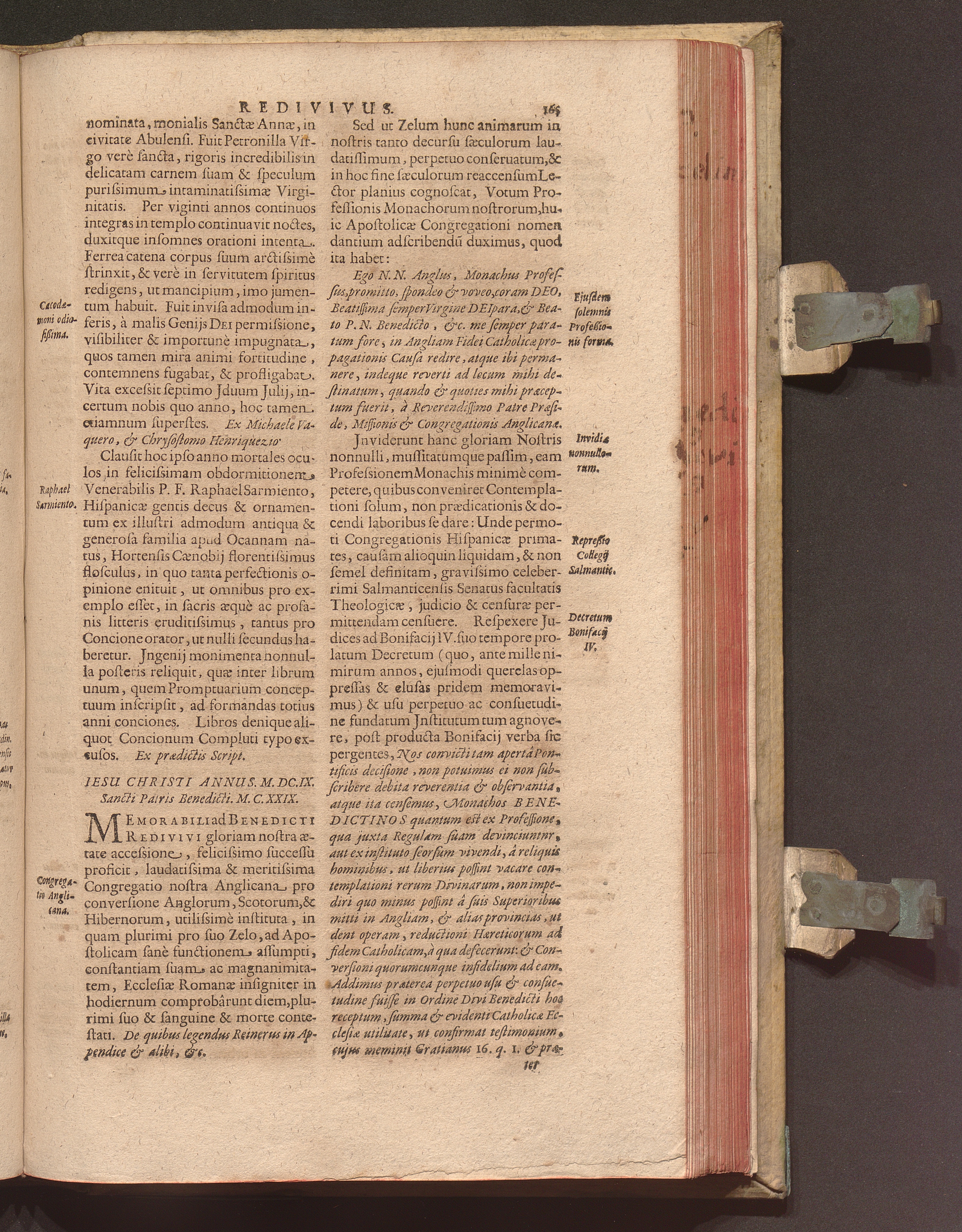 Benedictus Redivivus Hoc est: Benedictinj Ordinis Vetustißimi Amplißimique, Nostra, ac supera ætate Jmmarcescibilis Vigor, ac Viror : Anniversariâ Vernantiâ Chronologicè comprobatus, ac demonstratus Ab anno Christi M. D. Ad Præsentem Usque Ætatem, Et Annos Nostros, Jn Quo ... Operationes Jn Effusione Mirabili sui Spiritus ... quam compendiosissimè exhibe[n]tur / Opera, & Studio R. P. F. Gabrielis Bucelini Ascetæ Benedictini Imperialis Monasterij VVeingartensis Prioris S. Joannis Bapt. in Oppido Rhætiæ Superioris Veldkirchensi