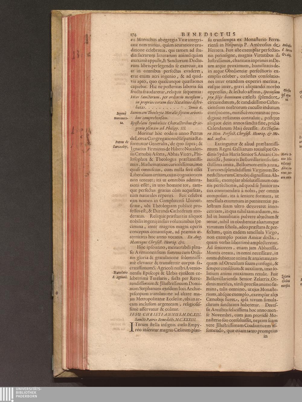 Benedictus Redivivus Hoc est: Benedictinj Ordinis Vetustißimi Amplißimique, Nostra, ac supera ætate Jmmarcescibilis Vigor, ac Viror : Anniversariâ Vernantiâ Chronologicè comprobatus, ac demonstratus Ab anno Christi M. D. Ad Præsentem Usque Ætatem, Et Annos Nostros, Jn Quo ... Operationes Jn Effusione Mirabili sui Spiritus ... quam compendiosissimè exhibe[n]tur / Opera, & Studio R. P. F. Gabrielis Bucelini Ascetæ Benedictini Imperialis Monasterij VVeingartensis Prioris S. Joannis Bapt. in Oppido Rhætiæ Superioris Veldkirchensi