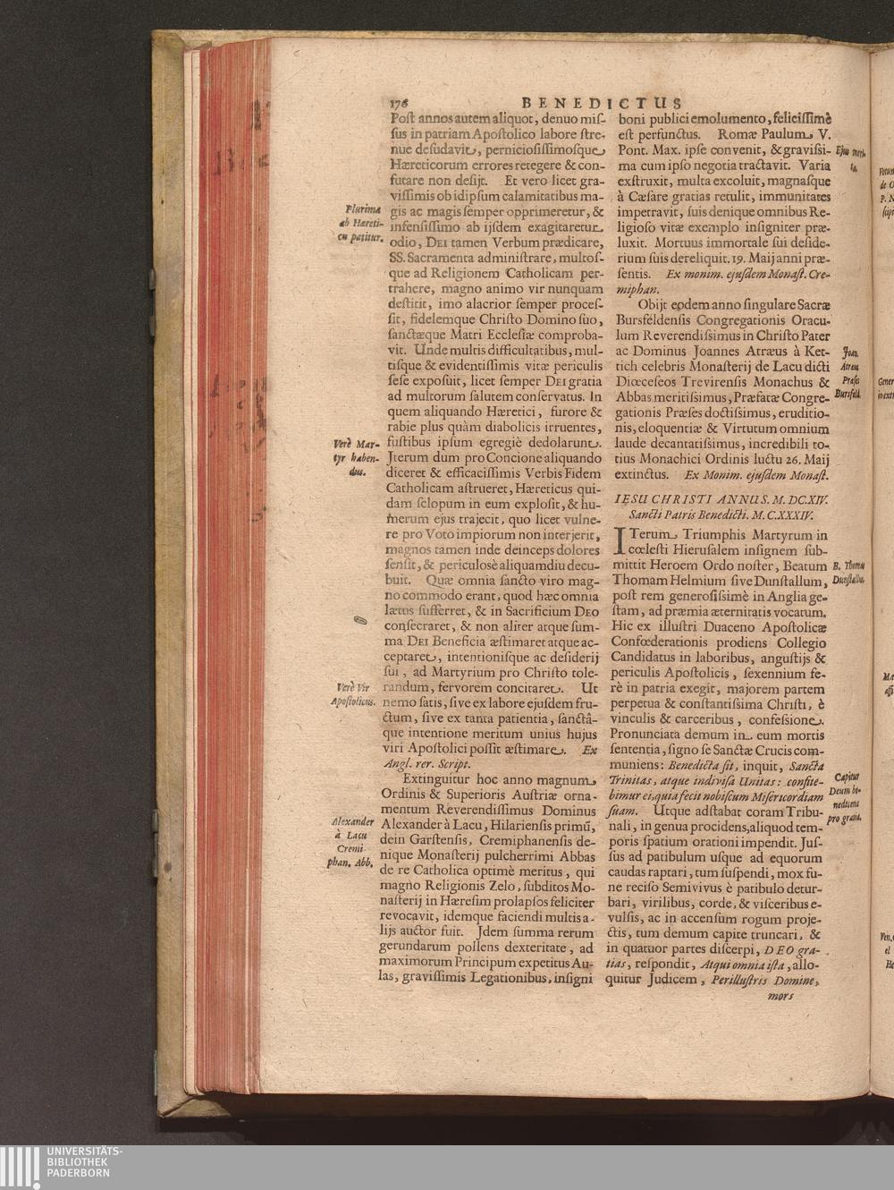Benedictus Redivivus Hoc est: Benedictinj Ordinis Vetustißimi Amplißimique, Nostra, ac supera ætate Jmmarcescibilis Vigor, ac Viror : Anniversariâ Vernantiâ Chronologicè comprobatus, ac demonstratus Ab anno Christi M. D. Ad Præsentem Usque Ætatem, Et Annos Nostros, Jn Quo ... Operationes Jn Effusione Mirabili sui Spiritus ... quam compendiosissimè exhibe[n]tur / Opera, & Studio R. P. F. Gabrielis Bucelini Ascetæ Benedictini Imperialis Monasterij VVeingartensis Prioris S. Joannis Bapt. in Oppido Rhætiæ Superioris Veldkirchensi