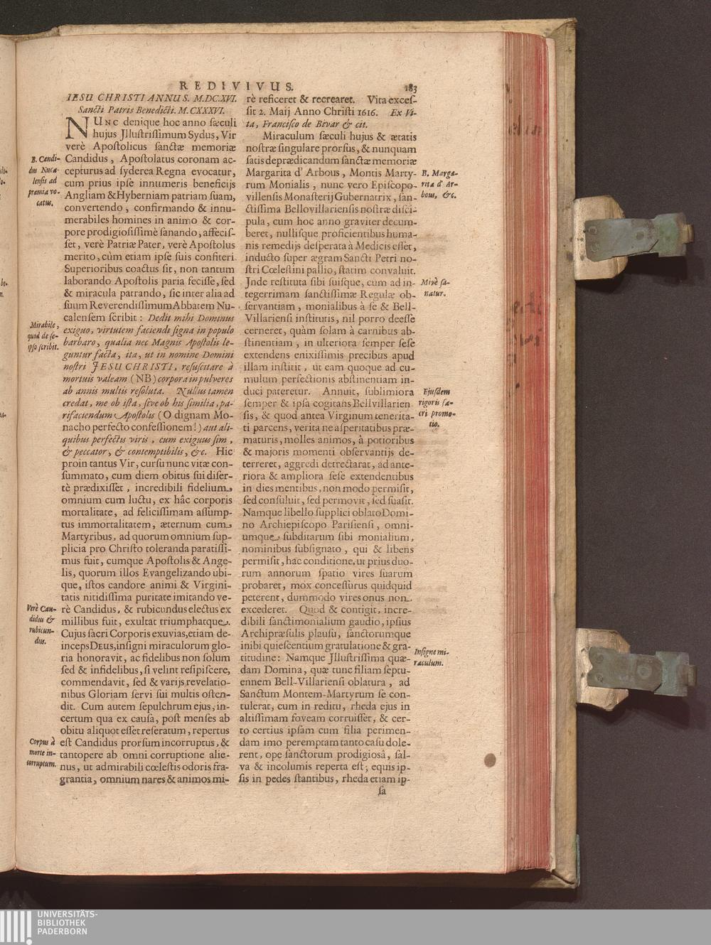 Benedictus Redivivus Hoc est: Benedictinj Ordinis Vetustißimi Amplißimique, Nostra, ac supera ætate Jmmarcescibilis Vigor, ac Viror : Anniversariâ Vernantiâ Chronologicè comprobatus, ac demonstratus Ab anno Christi M. D. Ad Præsentem Usque Ætatem, Et Annos Nostros, Jn Quo ... Operationes Jn Effusione Mirabili sui Spiritus ... quam compendiosissimè exhibe[n]tur / Opera, & Studio R. P. F. Gabrielis Bucelini Ascetæ Benedictini Imperialis Monasterij VVeingartensis Prioris S. Joannis Bapt. in Oppido Rhætiæ Superioris Veldkirchensi