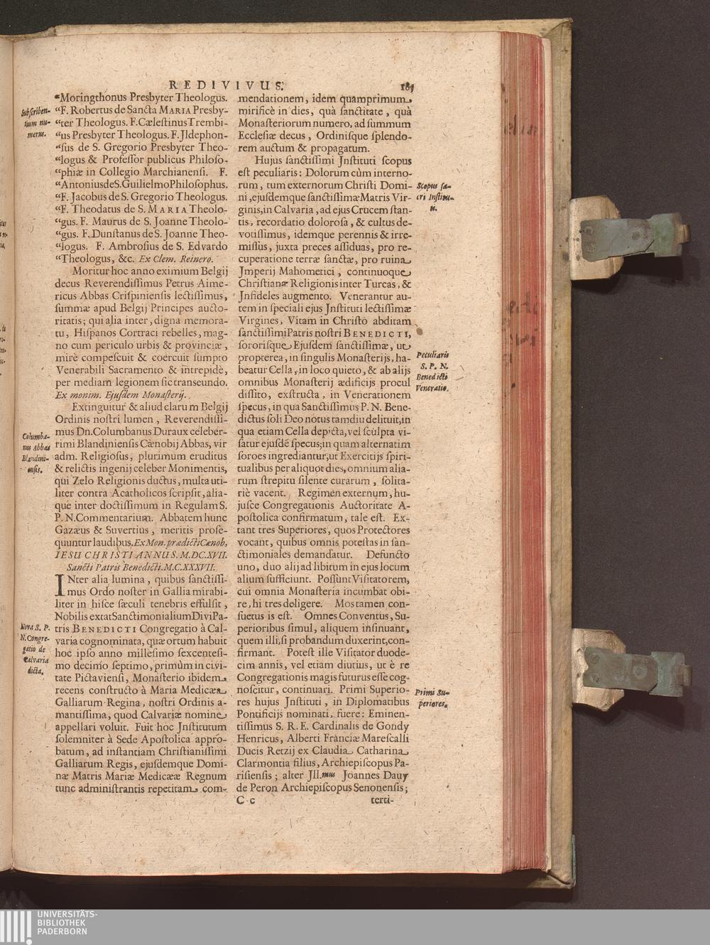 Benedictus Redivivus Hoc est: Benedictinj Ordinis Vetustißimi Amplißimique, Nostra, ac supera ætate Jmmarcescibilis Vigor, ac Viror : Anniversariâ Vernantiâ Chronologicè comprobatus, ac demonstratus Ab anno Christi M. D. Ad Præsentem Usque Ætatem, Et Annos Nostros, Jn Quo ... Operationes Jn Effusione Mirabili sui Spiritus ... quam compendiosissimè exhibe[n]tur / Opera, & Studio R. P. F. Gabrielis Bucelini Ascetæ Benedictini Imperialis Monasterij VVeingartensis Prioris S. Joannis Bapt. in Oppido Rhætiæ Superioris Veldkirchensi