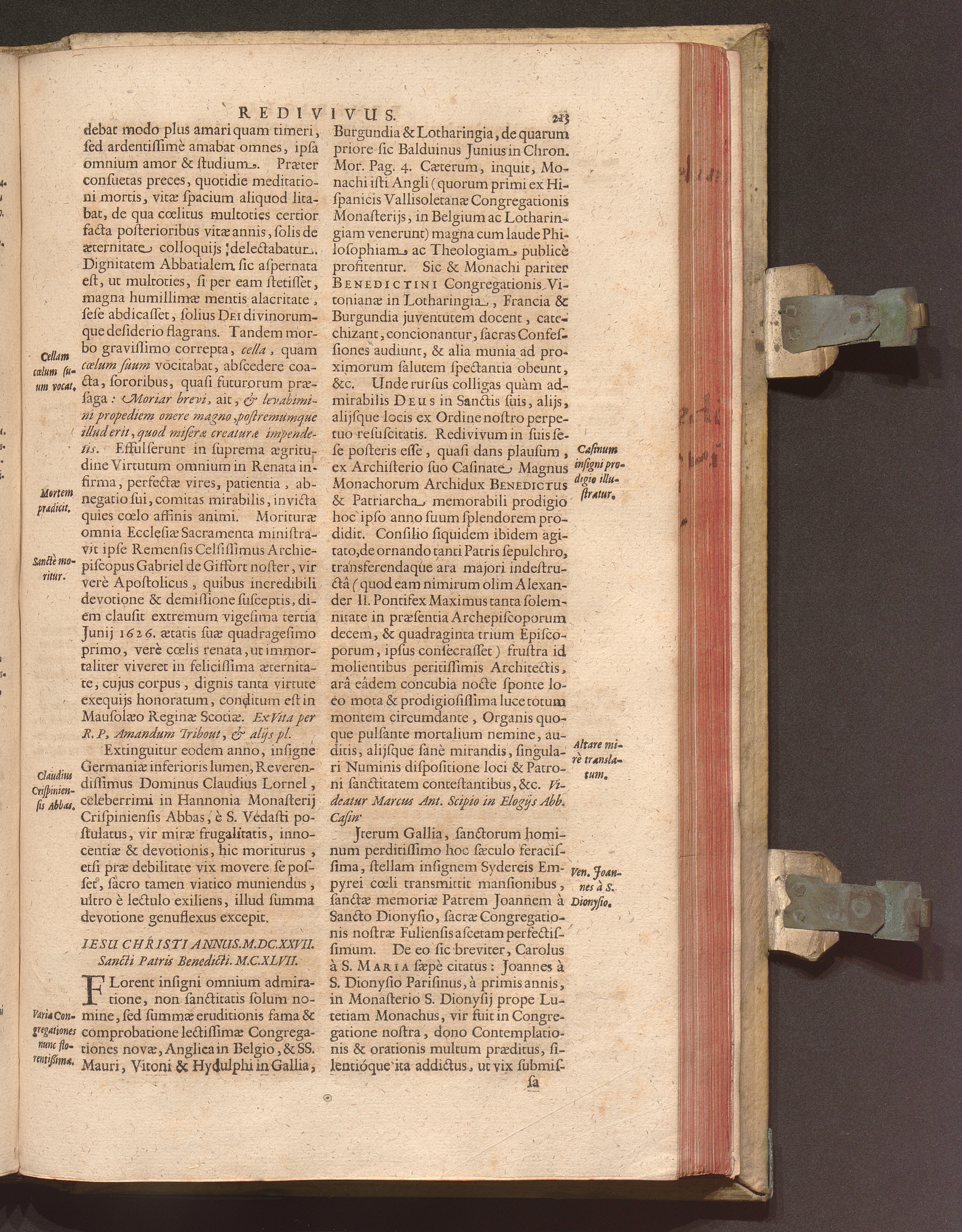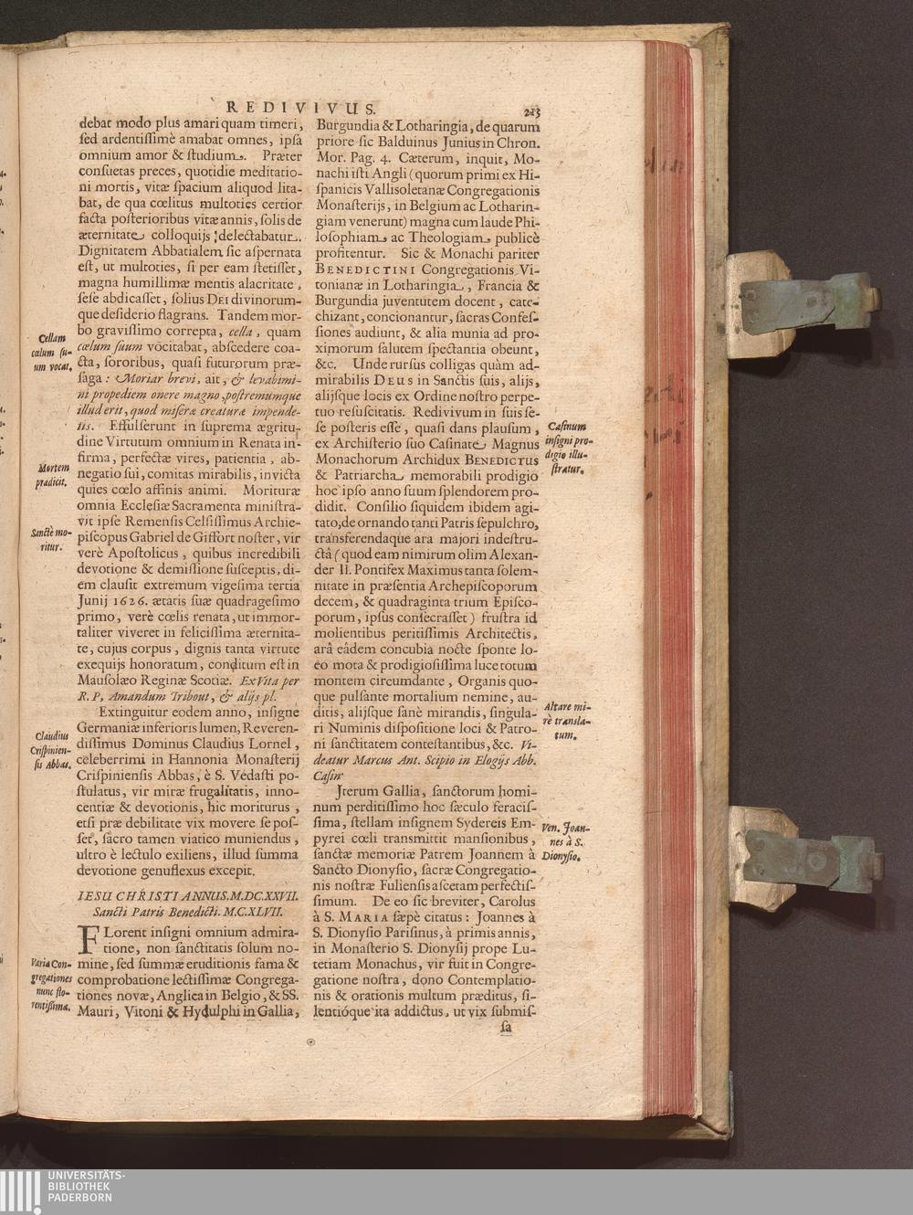 Benedictus Redivivus Hoc est: Benedictinj Ordinis Vetustißimi Amplißimique, Nostra, ac supera ætate Jmmarcescibilis Vigor, ac Viror : Anniversariâ Vernantiâ Chronologicè comprobatus, ac demonstratus Ab anno Christi M. D. Ad Præsentem Usque Ætatem, Et Annos Nostros, Jn Quo ... Operationes Jn Effusione Mirabili sui Spiritus ... quam compendiosissimè exhibe[n]tur / Opera, & Studio R. P. F. Gabrielis Bucelini Ascetæ Benedictini Imperialis Monasterij VVeingartensis Prioris S. Joannis Bapt. in Oppido Rhætiæ Superioris Veldkirchensi