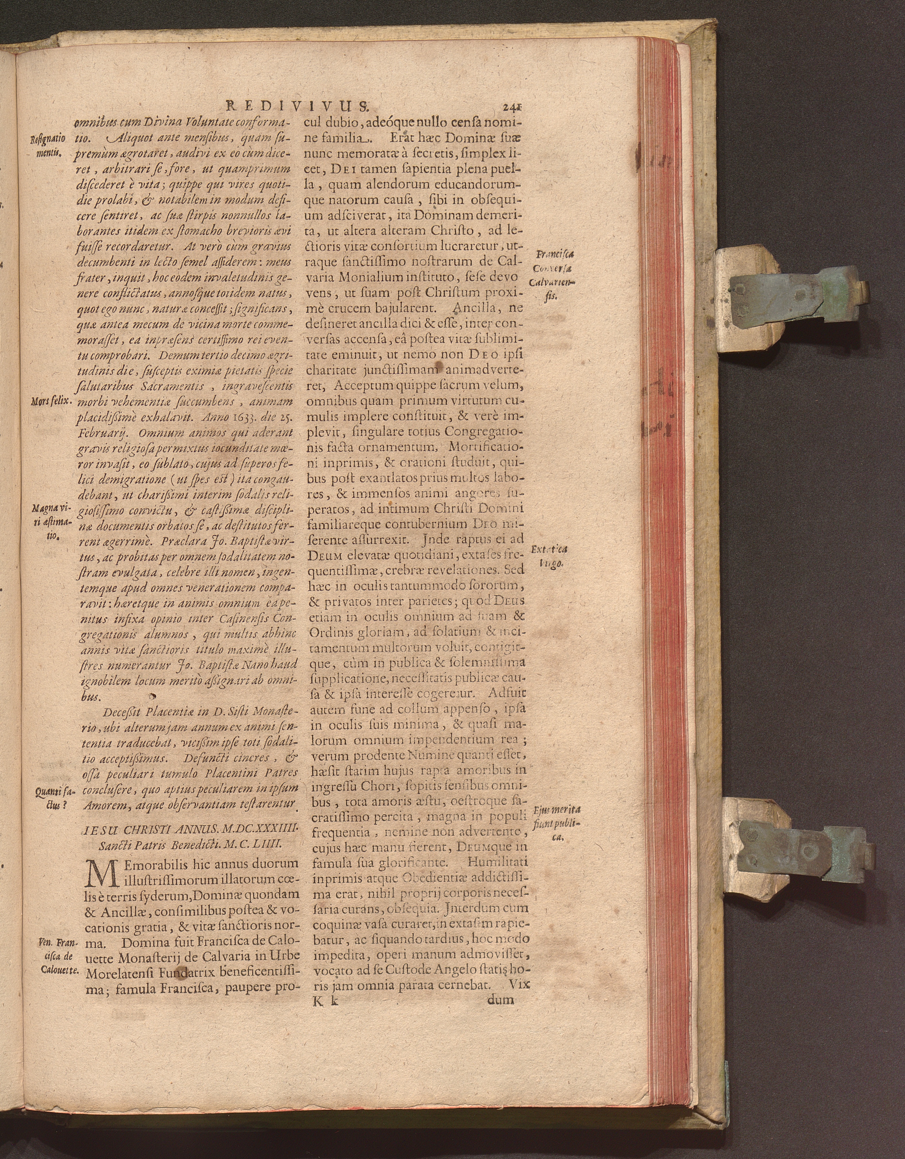 Benedictus Redivivus Hoc est: Benedictinj Ordinis Vetustißimi Amplißimique, Nostra, ac supera ætate Jmmarcescibilis Vigor, ac Viror : Anniversariâ Vernantiâ Chronologicè comprobatus, ac demonstratus Ab anno Christi M. D. Ad Præsentem Usque Ætatem, Et Annos Nostros, Jn Quo ... Operationes Jn Effusione Mirabili sui Spiritus ... quam compendiosissimè exhibe[n]tur / Opera, & Studio R. P. F. Gabrielis Bucelini Ascetæ Benedictini Imperialis Monasterij VVeingartensis Prioris S. Joannis Bapt. in Oppido Rhætiæ Superioris Veldkirchensi