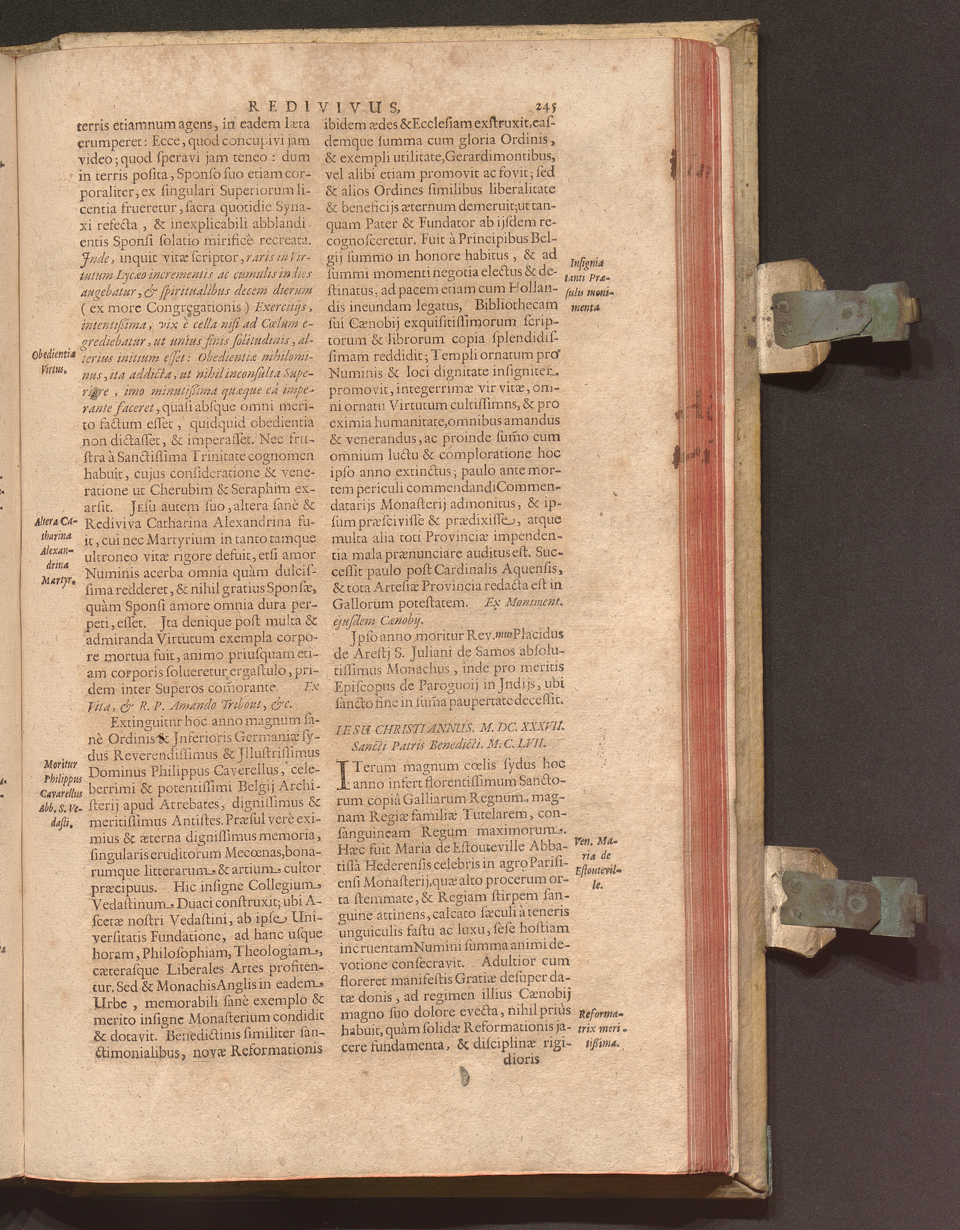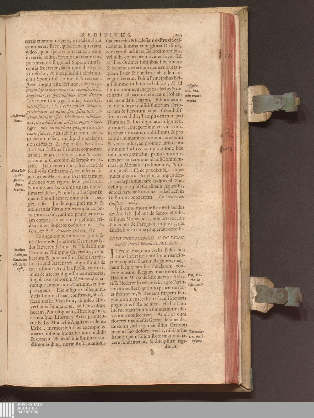 Benedictus Redivivus Hoc est: Benedictinj Ordinis Vetustißimi Amplißimique, Nostra, ac supera ætate Jmmarcescibilis Vigor, ac Viror : Anniversariâ Vernantiâ Chronologicè comprobatus, ac demonstratus Ab anno Christi M. D. Ad Præsentem Usque Ætatem, Et Annos Nostros, Jn Quo ... Operationes Jn Effusione Mirabili sui Spiritus ... quam compendiosissimè exhibe[n]tur / Opera, & Studio R. P. F. Gabrielis Bucelini Ascetæ Benedictini Imperialis Monasterij VVeingartensis Prioris S. Joannis Bapt. in Oppido Rhætiæ Superioris Veldkirchensi