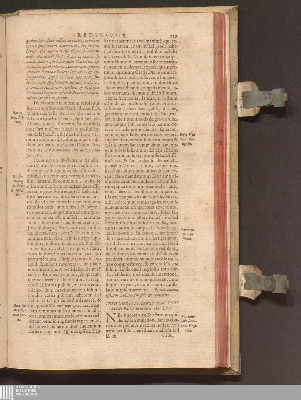 Benedictus Redivivus Hoc est: Benedictinj Ordinis Vetustißimi Amplißimique, Nostra, ac supera ætate Jmmarcescibilis Vigor, ac Viror : Anniversariâ Vernantiâ Chronologicè comprobatus, ac demonstratus Ab anno Christi M. D. Ad Præsentem Usque Ætatem, Et Annos Nostros, Jn Quo ... Operationes Jn Effusione Mirabili sui Spiritus ... quam compendiosissimè exhibe[n]tur / Opera, & Studio R. P. F. Gabrielis Bucelini Ascetæ Benedictini Imperialis Monasterij VVeingartensis Prioris S. Joannis Bapt. in Oppido Rhætiæ Superioris Veldkirchensi