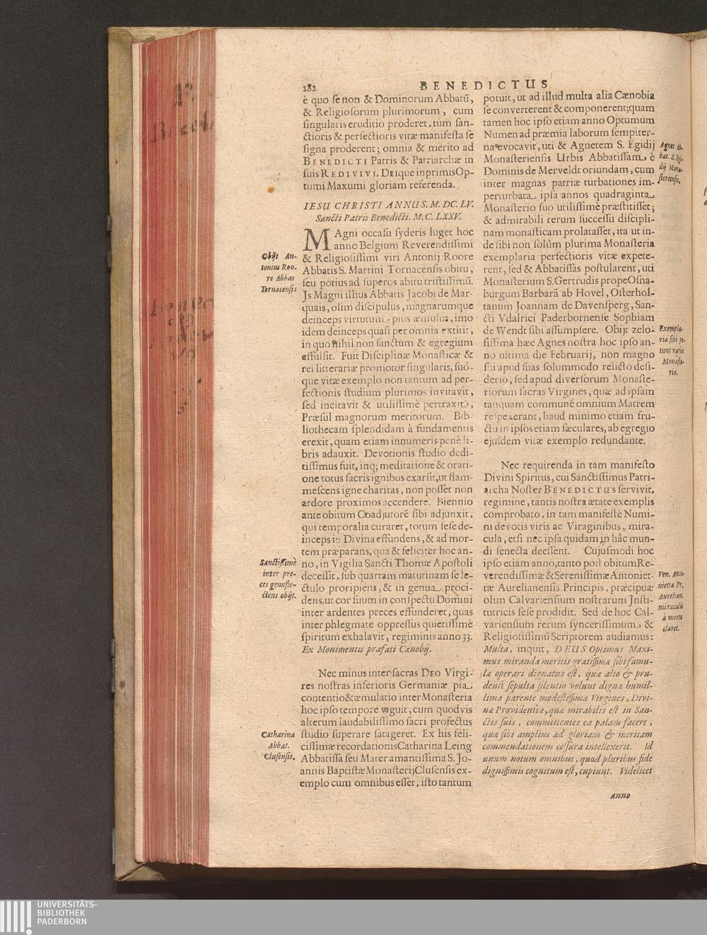 Benedictus Redivivus Hoc est: Benedictinj Ordinis Vetustißimi Amplißimique, Nostra, ac supera ætate Jmmarcescibilis Vigor, ac Viror : Anniversariâ Vernantiâ Chronologicè comprobatus, ac demonstratus Ab anno Christi M. D. Ad Præsentem Usque Ætatem, Et Annos Nostros, Jn Quo ... Operationes Jn Effusione Mirabili sui Spiritus ... quam compendiosissimè exhibe[n]tur / Opera, & Studio R. P. F. Gabrielis Bucelini Ascetæ Benedictini Imperialis Monasterij VVeingartensis Prioris S. Joannis Bapt. in Oppido Rhætiæ Superioris Veldkirchensi