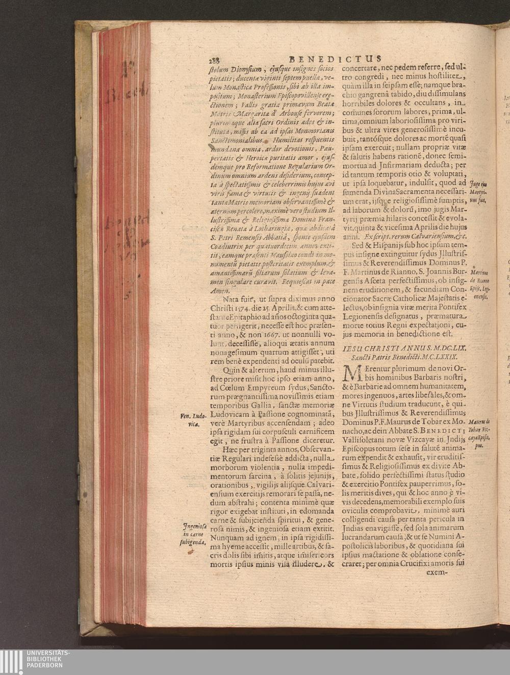Benedictus Redivivus Hoc est: Benedictinj Ordinis Vetustißimi Amplißimique, Nostra, ac supera ætate Jmmarcescibilis Vigor, ac Viror : Anniversariâ Vernantiâ Chronologicè comprobatus, ac demonstratus Ab anno Christi M. D. Ad Præsentem Usque Ætatem, Et Annos Nostros, Jn Quo ... Operationes Jn Effusione Mirabili sui Spiritus ... quam compendiosissimè exhibe[n]tur / Opera, & Studio R. P. F. Gabrielis Bucelini Ascetæ Benedictini Imperialis Monasterij VVeingartensis Prioris S. Joannis Bapt. in Oppido Rhætiæ Superioris Veldkirchensi