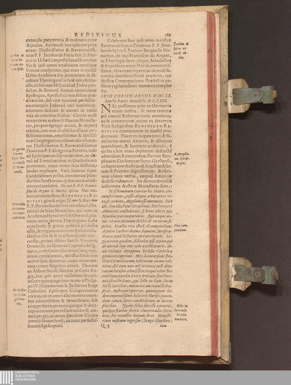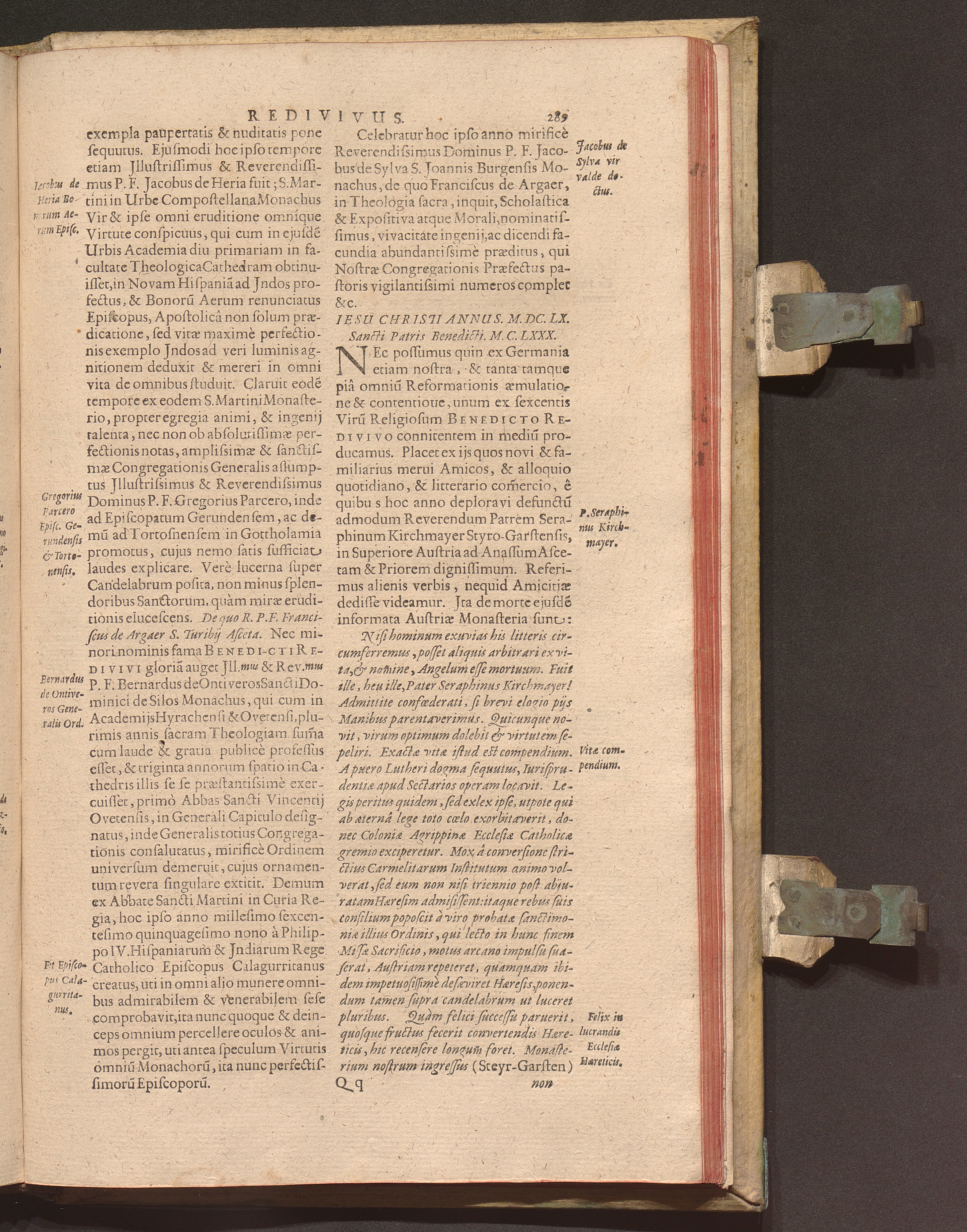 Benedictus Redivivus Hoc est: Benedictinj Ordinis Vetustißimi Amplißimique, Nostra, ac supera ætate Jmmarcescibilis Vigor, ac Viror : Anniversariâ Vernantiâ Chronologicè comprobatus, ac demonstratus Ab anno Christi M. D. Ad Præsentem Usque Ætatem, Et Annos Nostros, Jn Quo ... Operationes Jn Effusione Mirabili sui Spiritus ... quam compendiosissimè exhibe[n]tur / Opera, & Studio R. P. F. Gabrielis Bucelini Ascetæ Benedictini Imperialis Monasterij VVeingartensis Prioris S. Joannis Bapt. in Oppido Rhætiæ Superioris Veldkirchensi