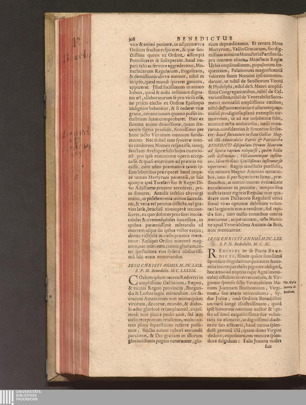Benedictus Redivivus Hoc est: Benedictinj Ordinis Vetustißimi Amplißimique, Nostra, ac supera ætate Jmmarcescibilis Vigor, ac Viror : Anniversariâ Vernantiâ Chronologicè comprobatus, ac demonstratus Ab anno Christi M. D. Ad Præsentem Usque Ætatem, Et Annos Nostros, Jn Quo ... Operationes Jn Effusione Mirabili sui Spiritus ... quam compendiosissimè exhibe[n]tur / Opera, & Studio R. P. F. Gabrielis Bucelini Ascetæ Benedictini Imperialis Monasterij VVeingartensis Prioris S. Joannis Bapt. in Oppido Rhætiæ Superioris Veldkirchensi
