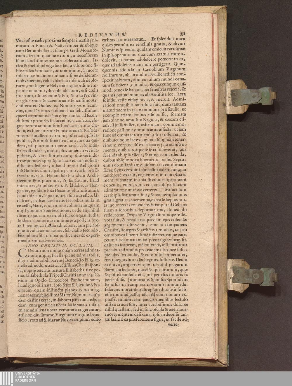 Benedictus Redivivus Hoc est: Benedictinj Ordinis Vetustißimi Amplißimique, Nostra, ac supera ætate Jmmarcescibilis Vigor, ac Viror : Anniversariâ Vernantiâ Chronologicè comprobatus, ac demonstratus Ab anno Christi M. D. Ad Præsentem Usque Ætatem, Et Annos Nostros, Jn Quo ... Operationes Jn Effusione Mirabili sui Spiritus ... quam compendiosissimè exhibe[n]tur / Opera, & Studio R. P. F. Gabrielis Bucelini Ascetæ Benedictini Imperialis Monasterij VVeingartensis Prioris S. Joannis Bapt. in Oppido Rhætiæ Superioris Veldkirchensi