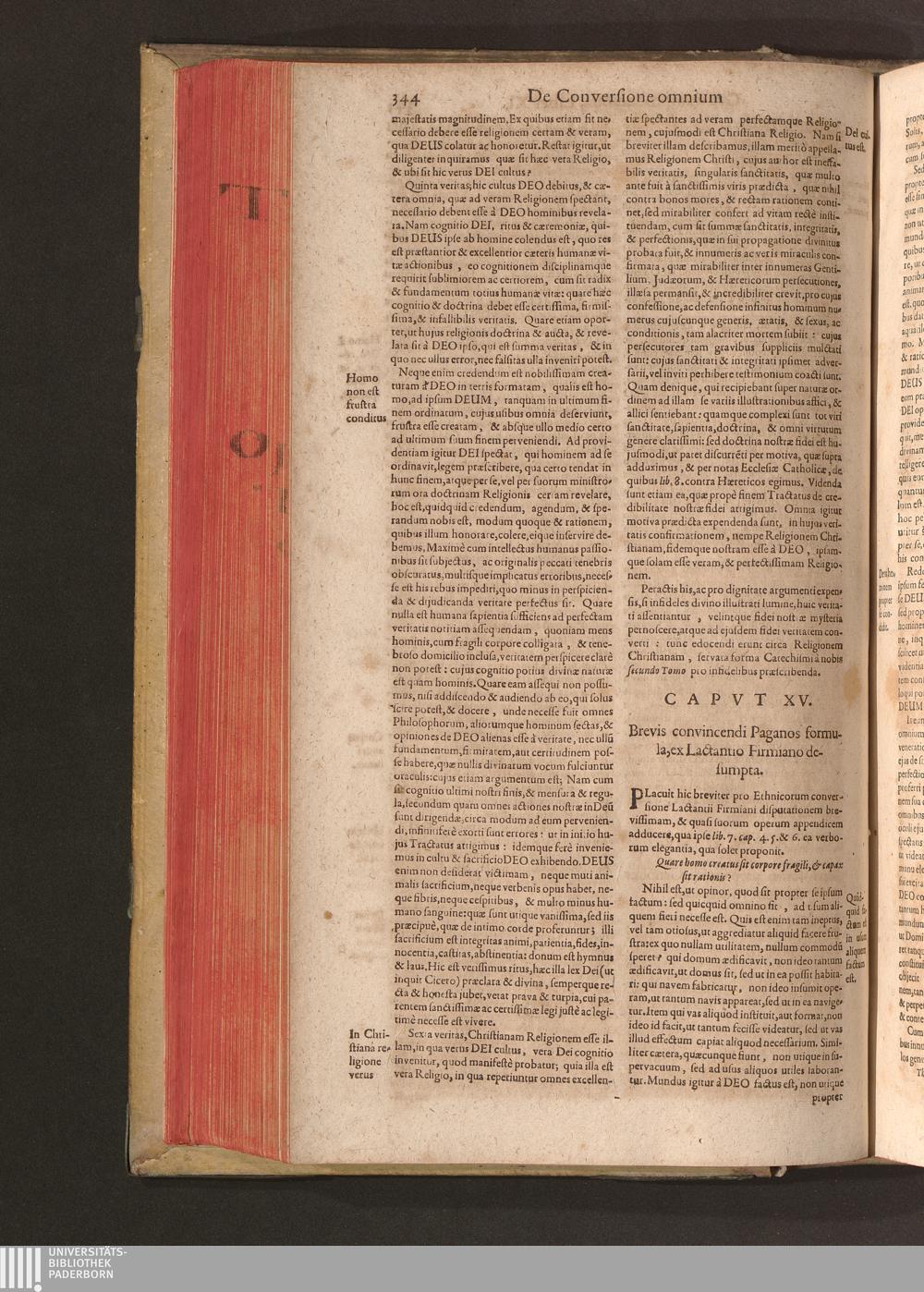 Capvt XV. Brevis convincendi Paganos formula, ex Lactantio Firmiano desumpta.