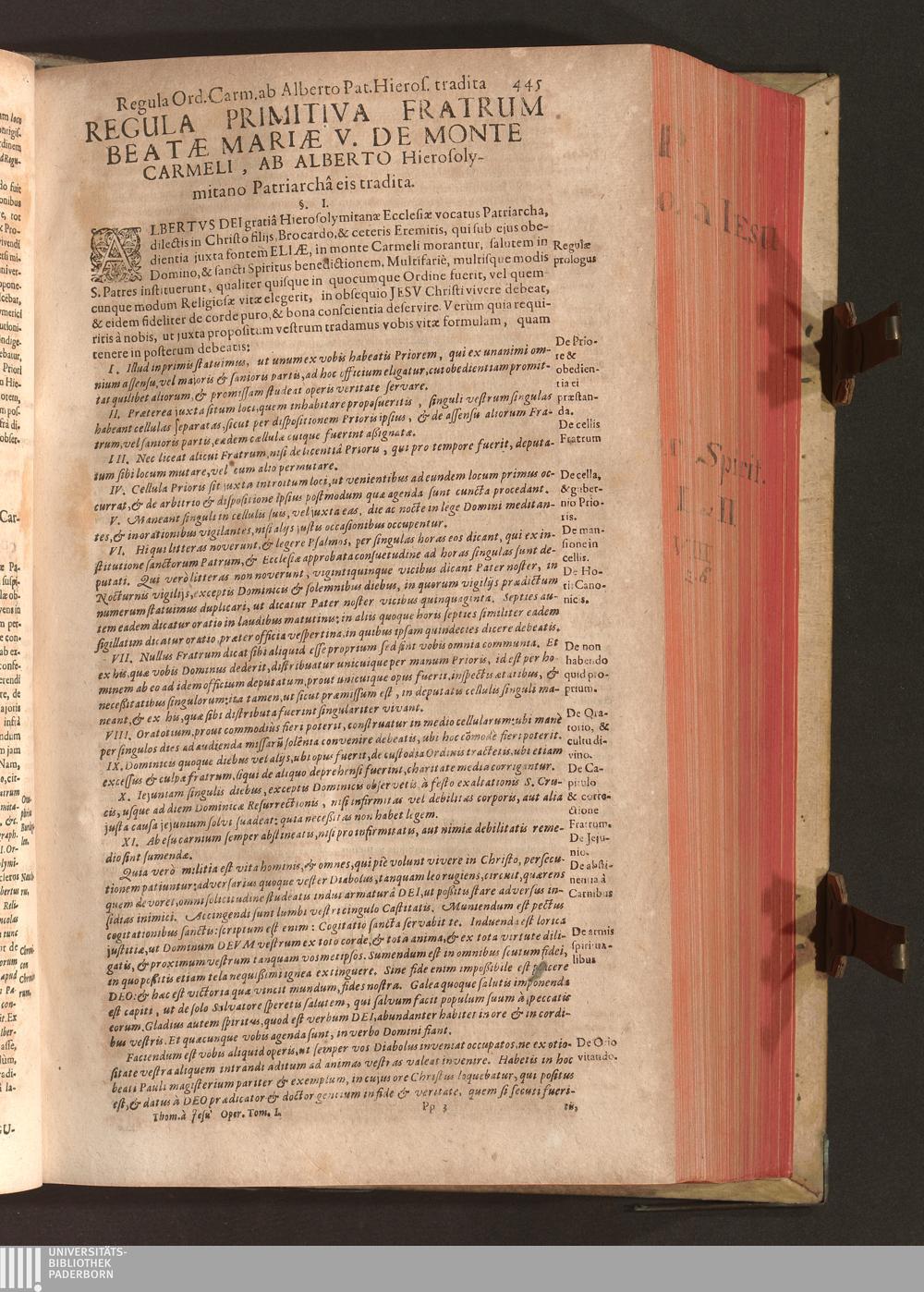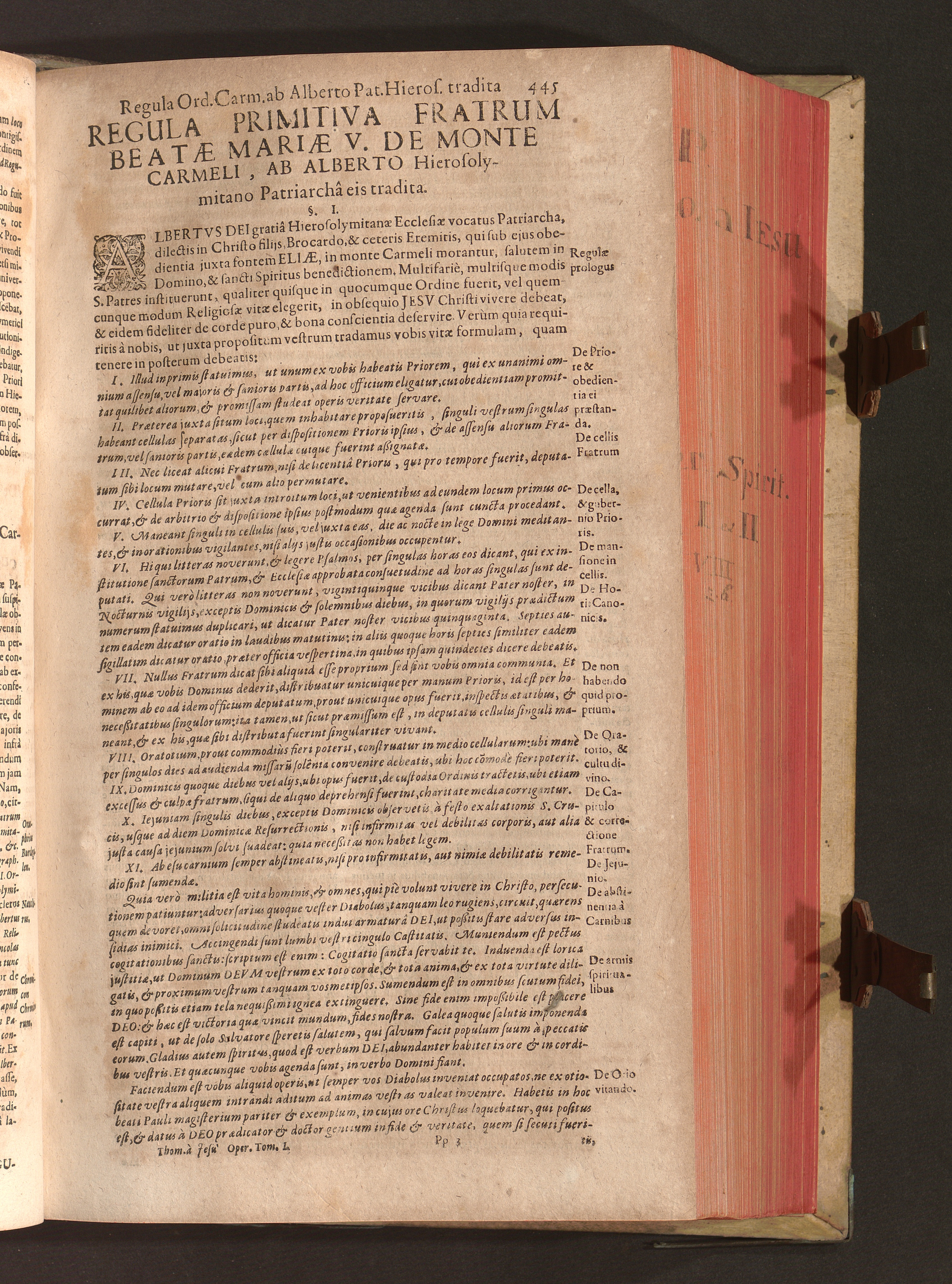 Regula Primitiva Fratrum Beatæ Mariæ V. De Monte Carmeli, Ab Alberto Hierosolymitano[...]