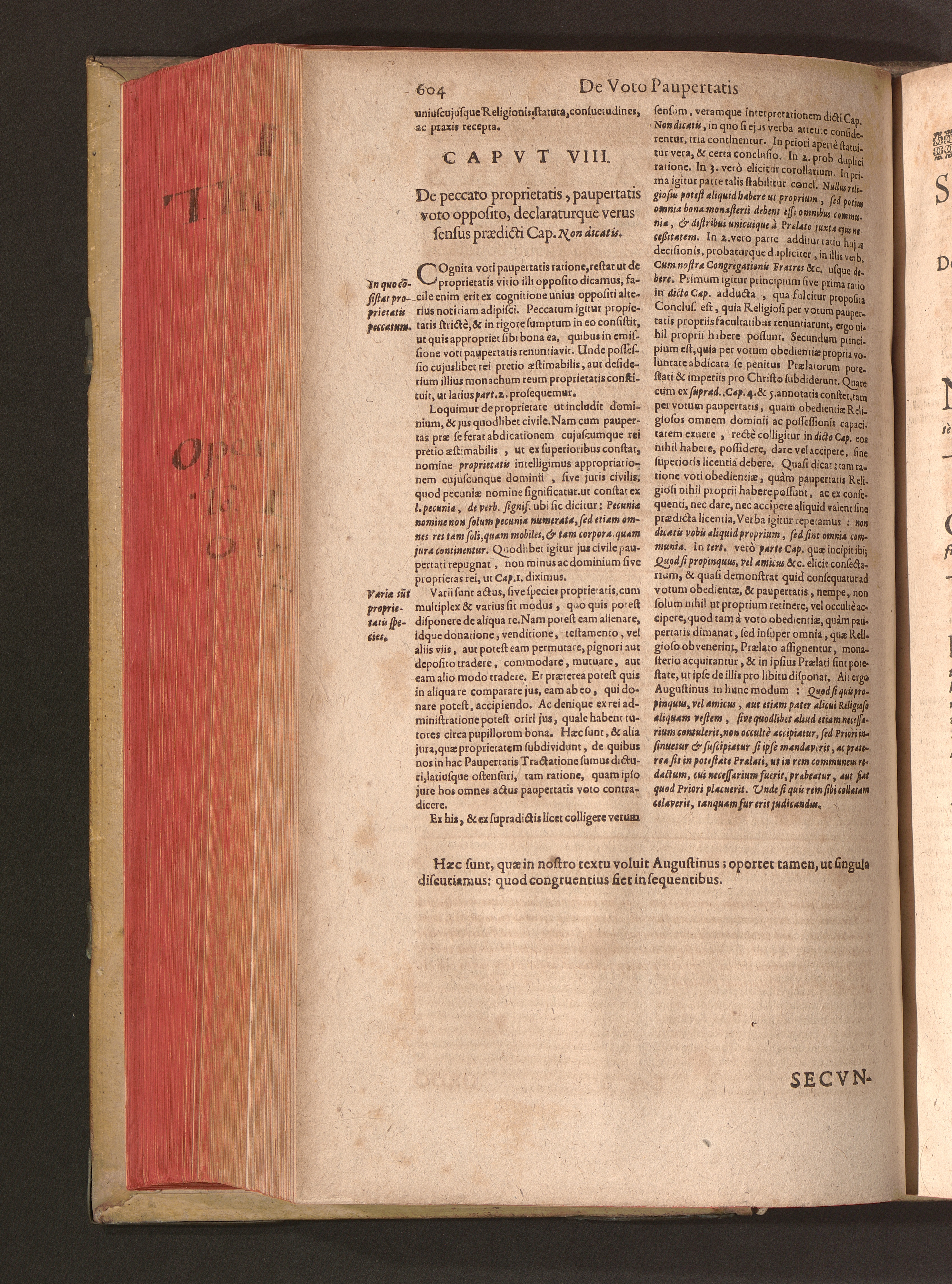 Capvt VIII. De peccato proprietatis, paupertatis voto opposito, declaraturque verus[...]
