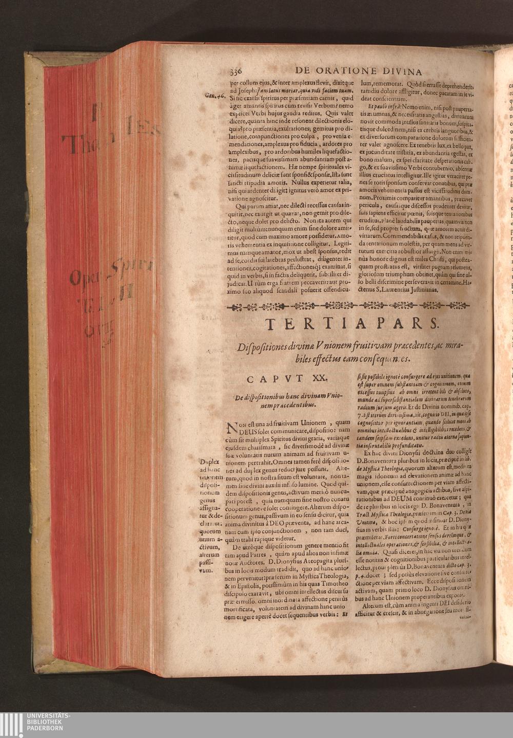 Tertia Pars. Dispositiones divinæ Vnionem fruitivam præcedentes, ac mirabiles effectus[...]
