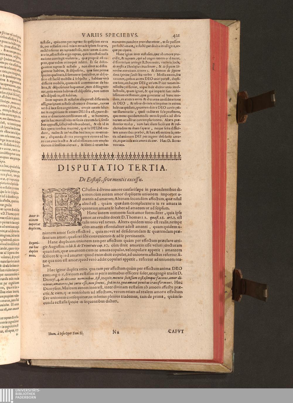 Disputatio Tertia. De Ecstasi, sive mentis excessu.