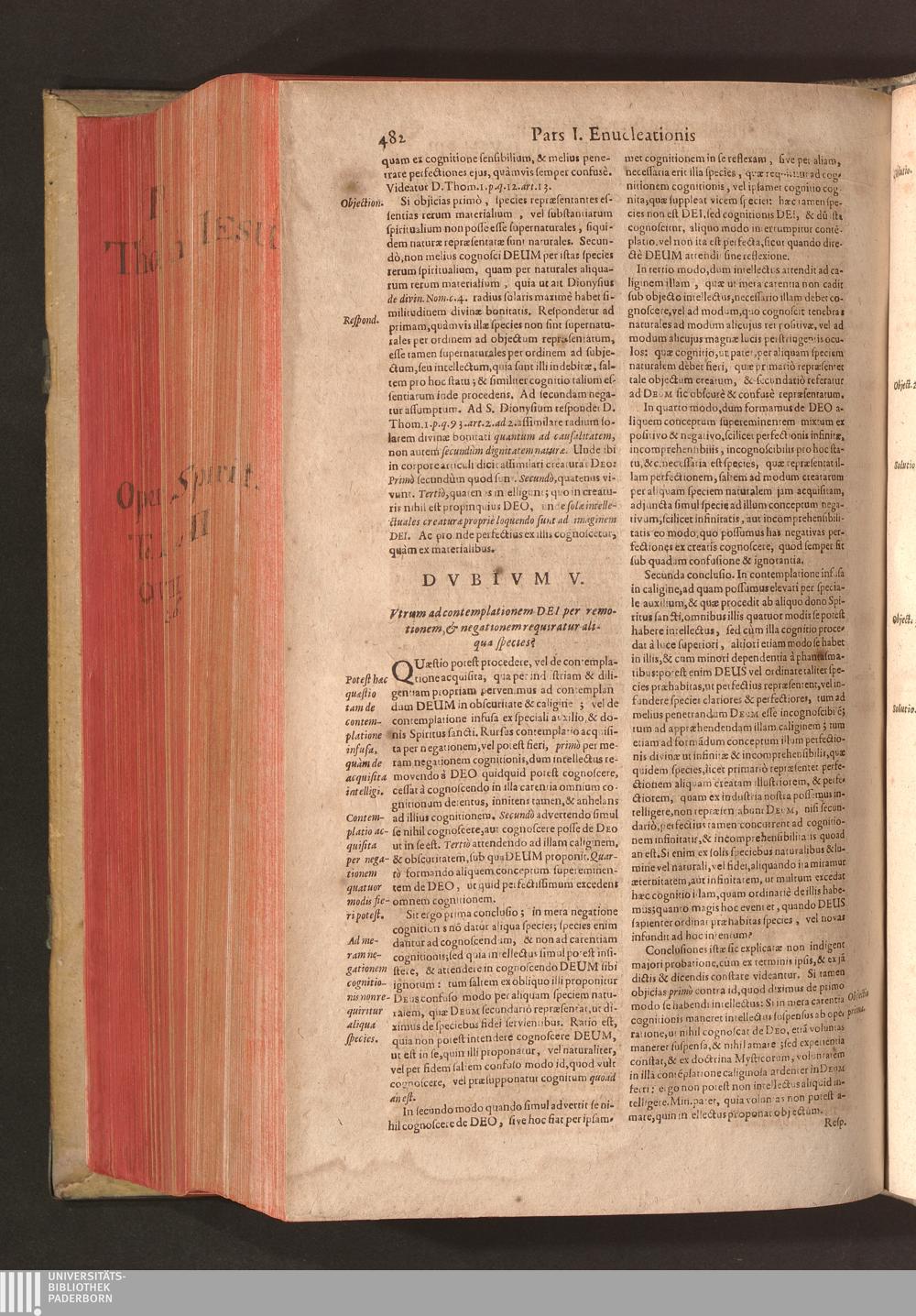 Dub. V. Vtrum ad contemplationem Dei per remotionem, & negationem requiratur aliqua[...]