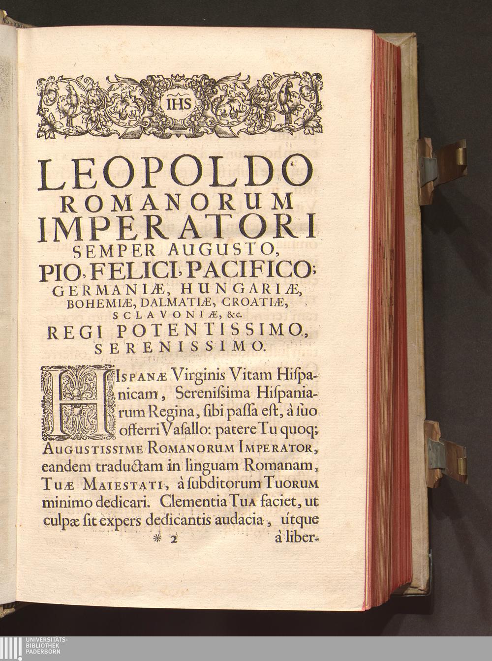 Leopoldo Romanorum Imperatori Semper Augusto, Pio, Felici, Pacifico; Germaniæ, Hungariæ,[...]