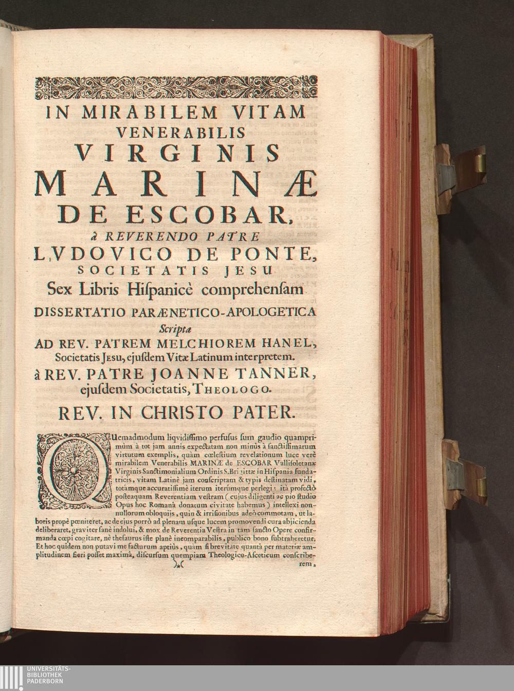 Pars Prima (1672) Vitæ Venerabilis Virginis Marinæ De Escobar. Pars Prima