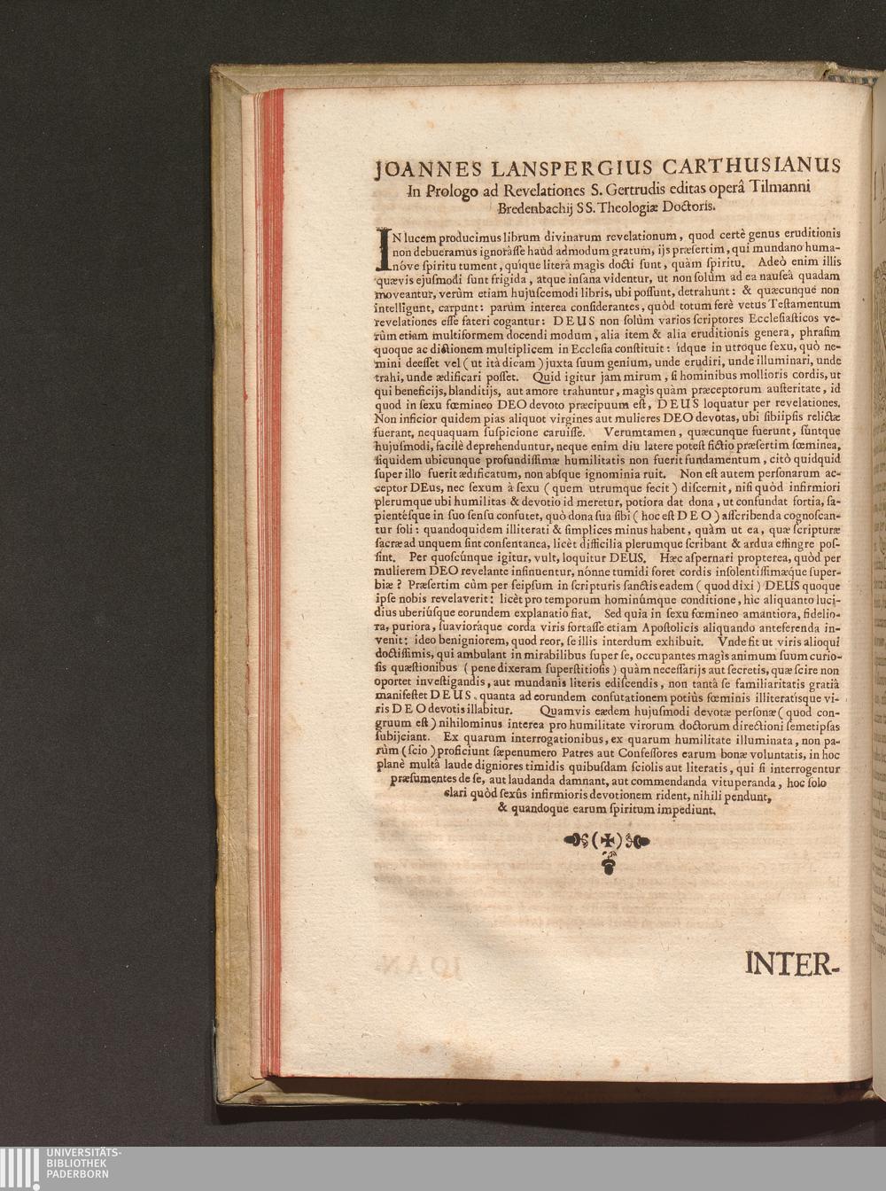 Joannes Lanspergius Carthusianus In Prologo ad Revelationes S. Gertrudis editas operâ[...]