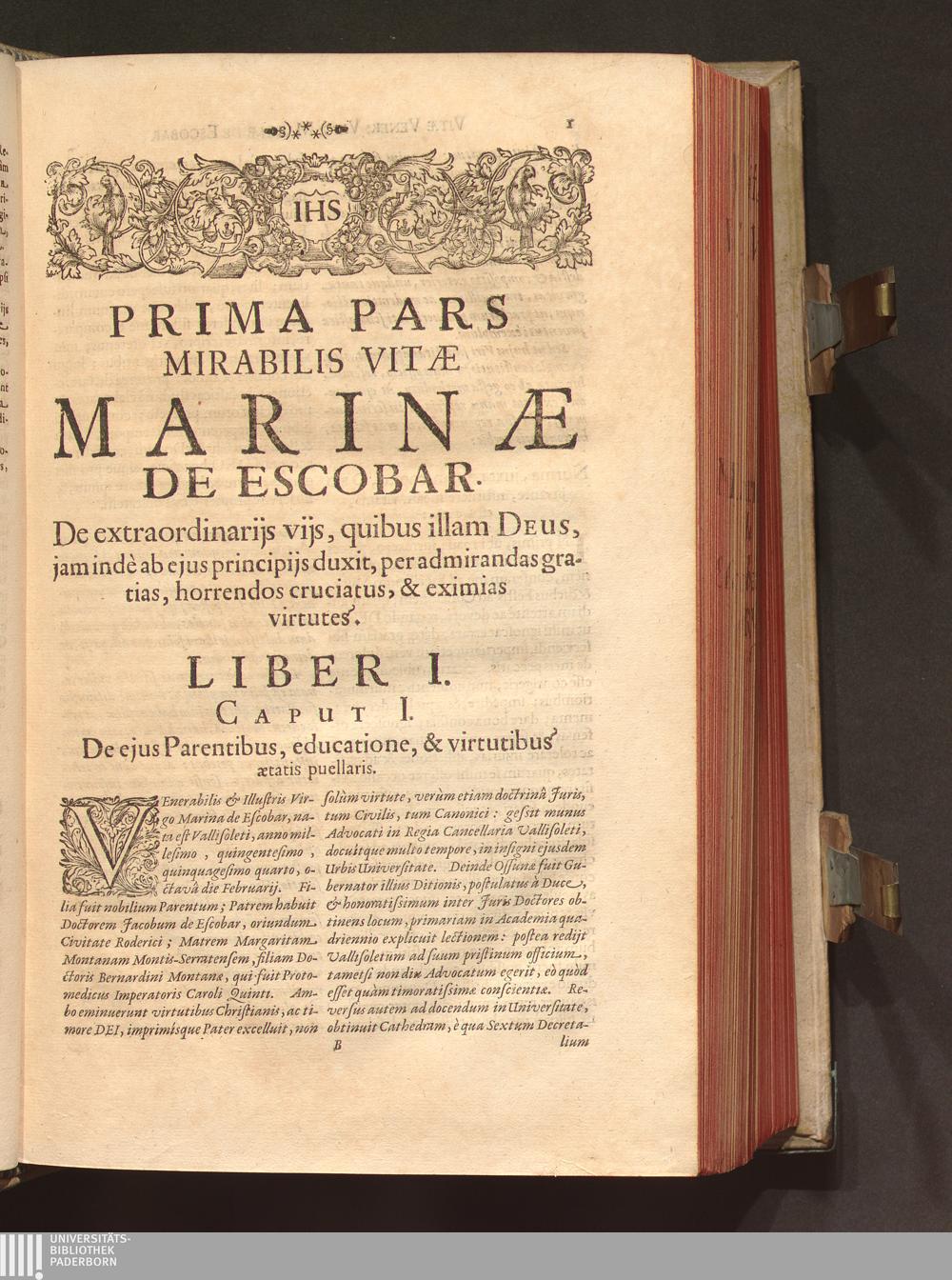 Pars Prima (1672) Vitæ Venerabilis Virginis Marinæ De Escobar. Pars Prima