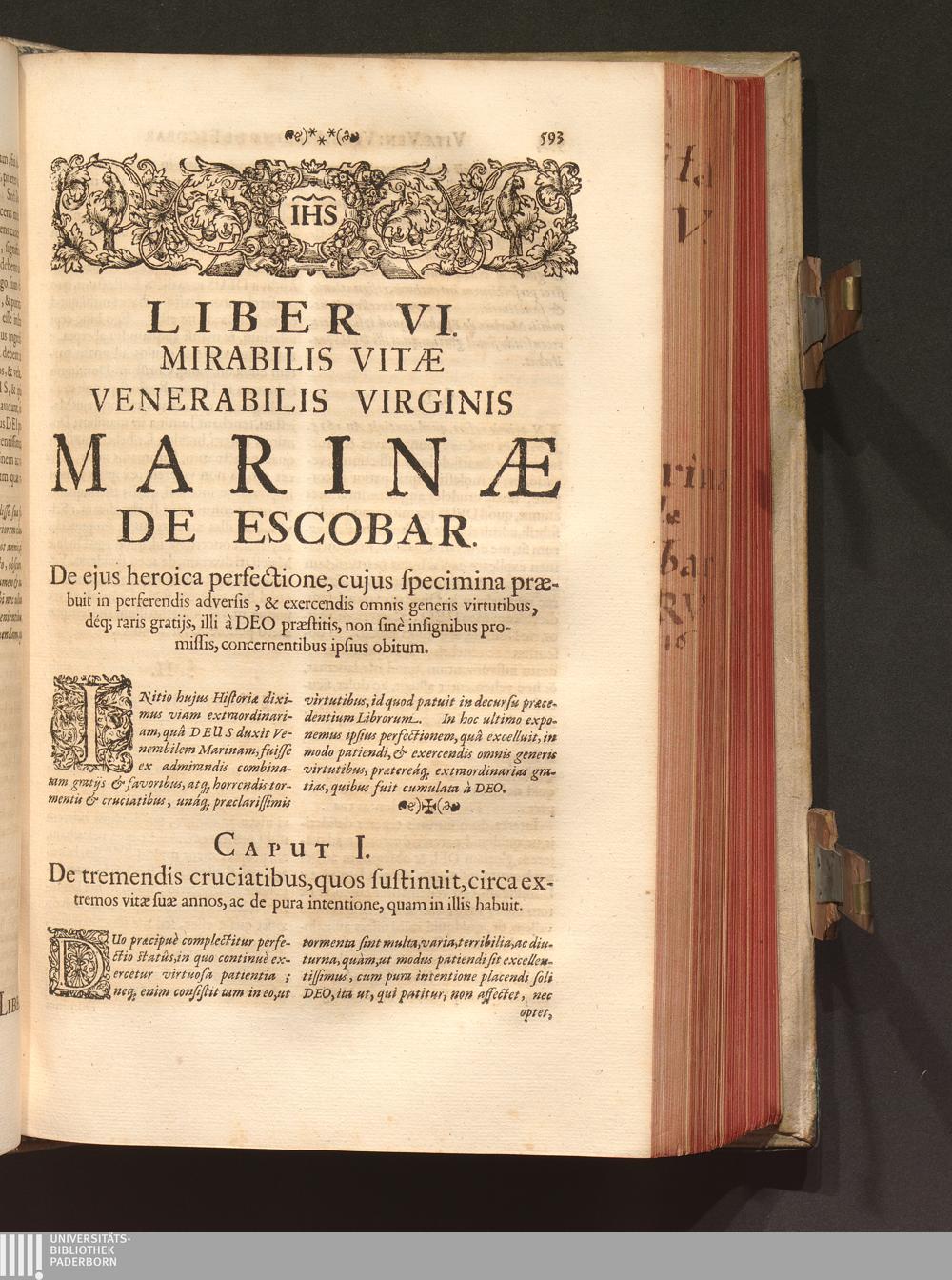Pars Prima (1672) Vitæ Venerabilis Virginis Marinæ De Escobar. Pars Prima