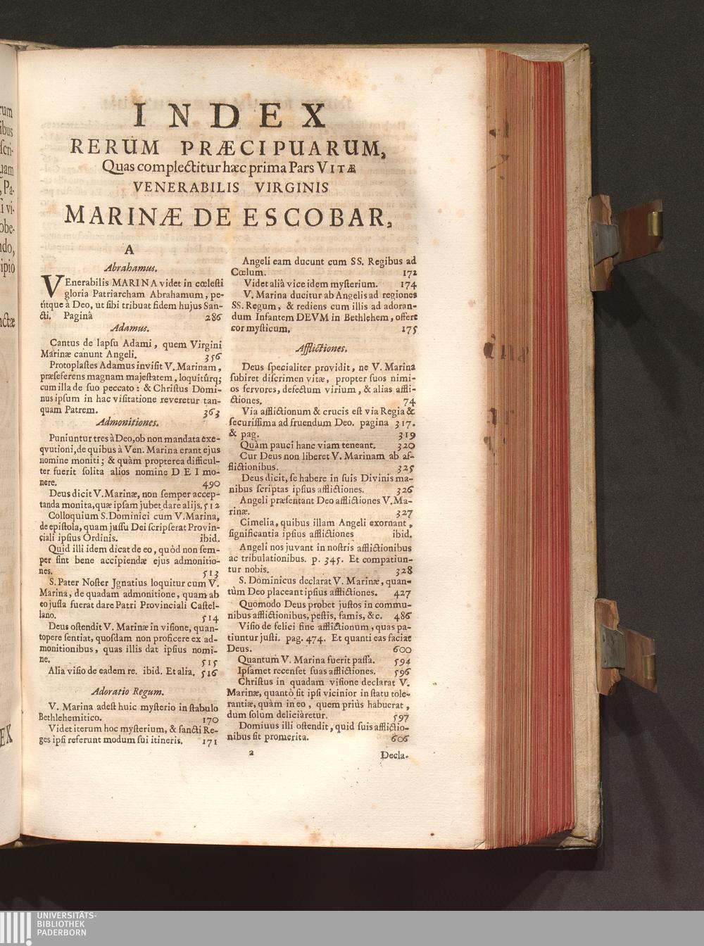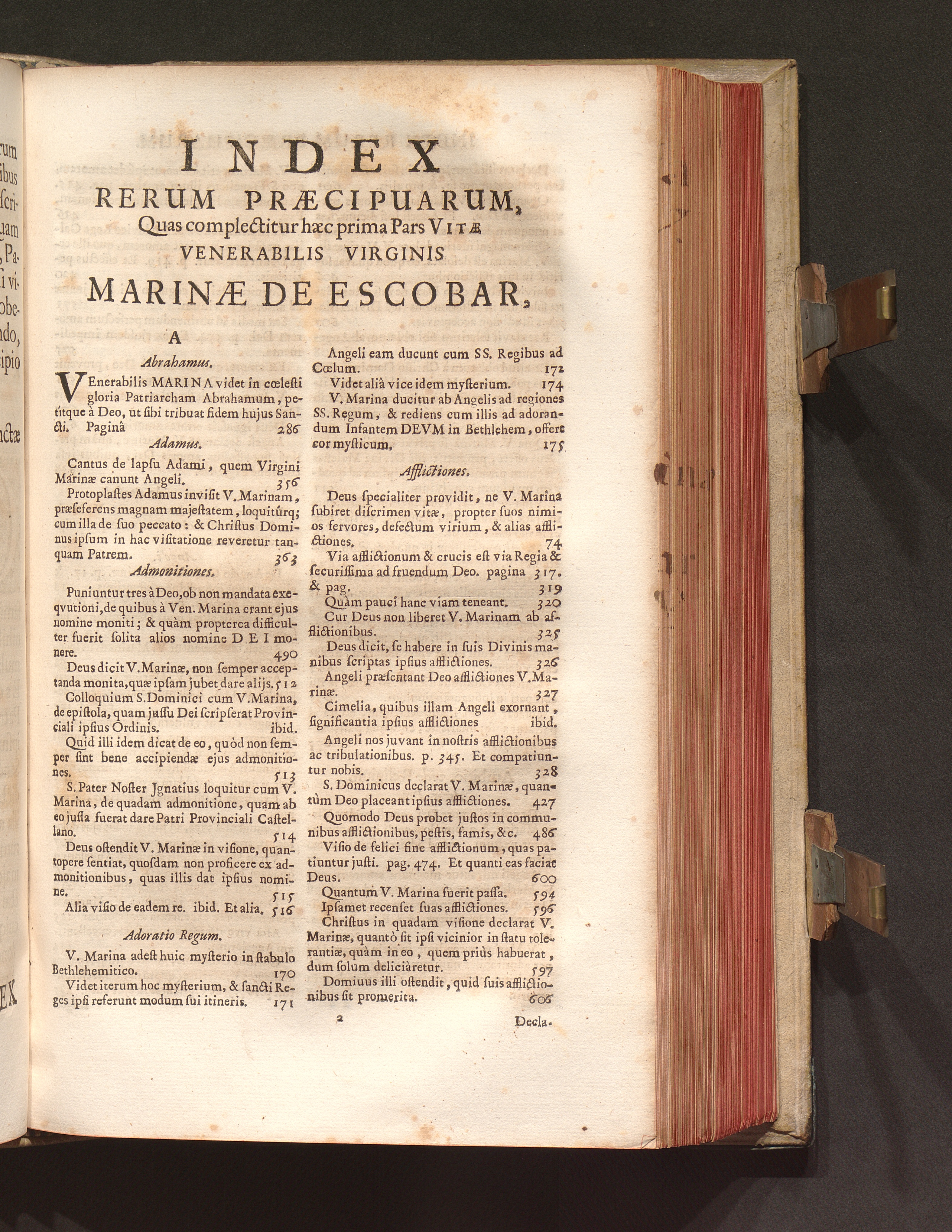 Index Rerum Præcipuarum, Quas complectitur hæc prima Pars Vitæ Venerabilis Virginis[...]