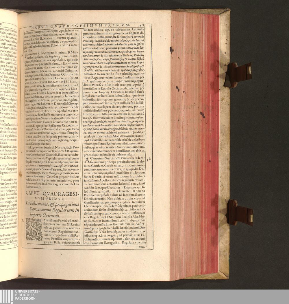 Generalis Totivs Sacri Ordinis Clericorvm Canonicorvm Historia Tripartita : Cvivs In Prima Parte De Clericali Sanctissimi P. Avgvstini Institvto, Et Habitv. In Secvnda De origine, procursuque totius Ordinis Canonicorum Regularium. In Tertia De Congr. Canonic. Saluatoris Lateranensis locupletissimè disseritur / Gabriele Pennotto Novariense Ex Congregatione Lateranensi S. Ivliani Apvd Spoletum Abbate, ac Theologo Autore