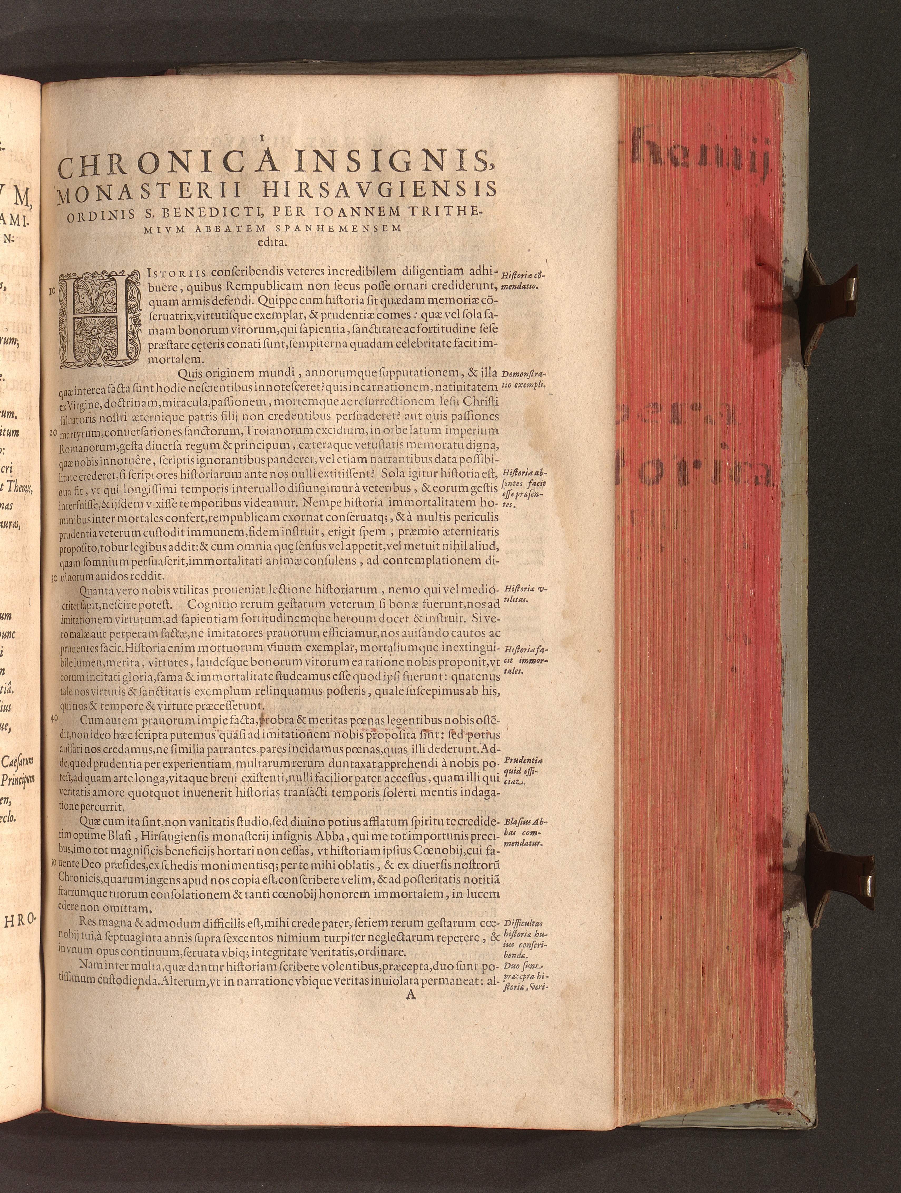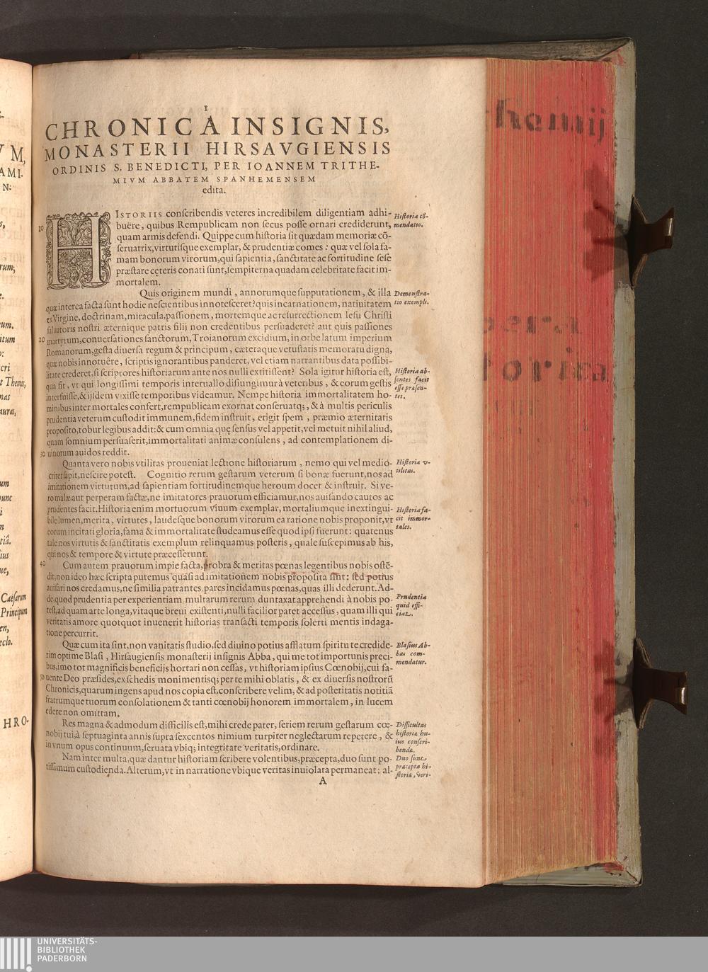 2 (1601) Iohannis Trithemii Spanheimensis Primo, Deinde D. Iacobi Maioris Apvd Herbipolin Abbatis, viri suo æuo doctissimi Secvndæ Partis Chronica Insignia Dvo : I. Coenobii Hirsavgiensis, Diœcesis Spirensis: eius fundationem & progressum ab Anno Christi DCCCXXX. vsque ad Annum MCCCLXX. II. Coenobii Spanheimensis, Diœcesis Moguntinensis: eius fundationem & progressum ab Anno Christi MCXXIIII. vsque ad Annum MDXXVI. vel potius res ab octo illis sæculis in tota Ecclesia & Imperio memorabiliter gestas, complectens; Qvorvm Privs Collatione Archetypi Ipsivs Auctoris manuscripti correctius & plenius; posterius verò istud nunc primùm è tenebris erutum, ob insignem vtilitatem optimâ fide in lucem editur; Accedunt Epistolæ eiusdem Familiares, ab excessu eius de cœnobio Spanheimensi ad Principes clarosque viros scriptæ, historiis eius æui referctæ