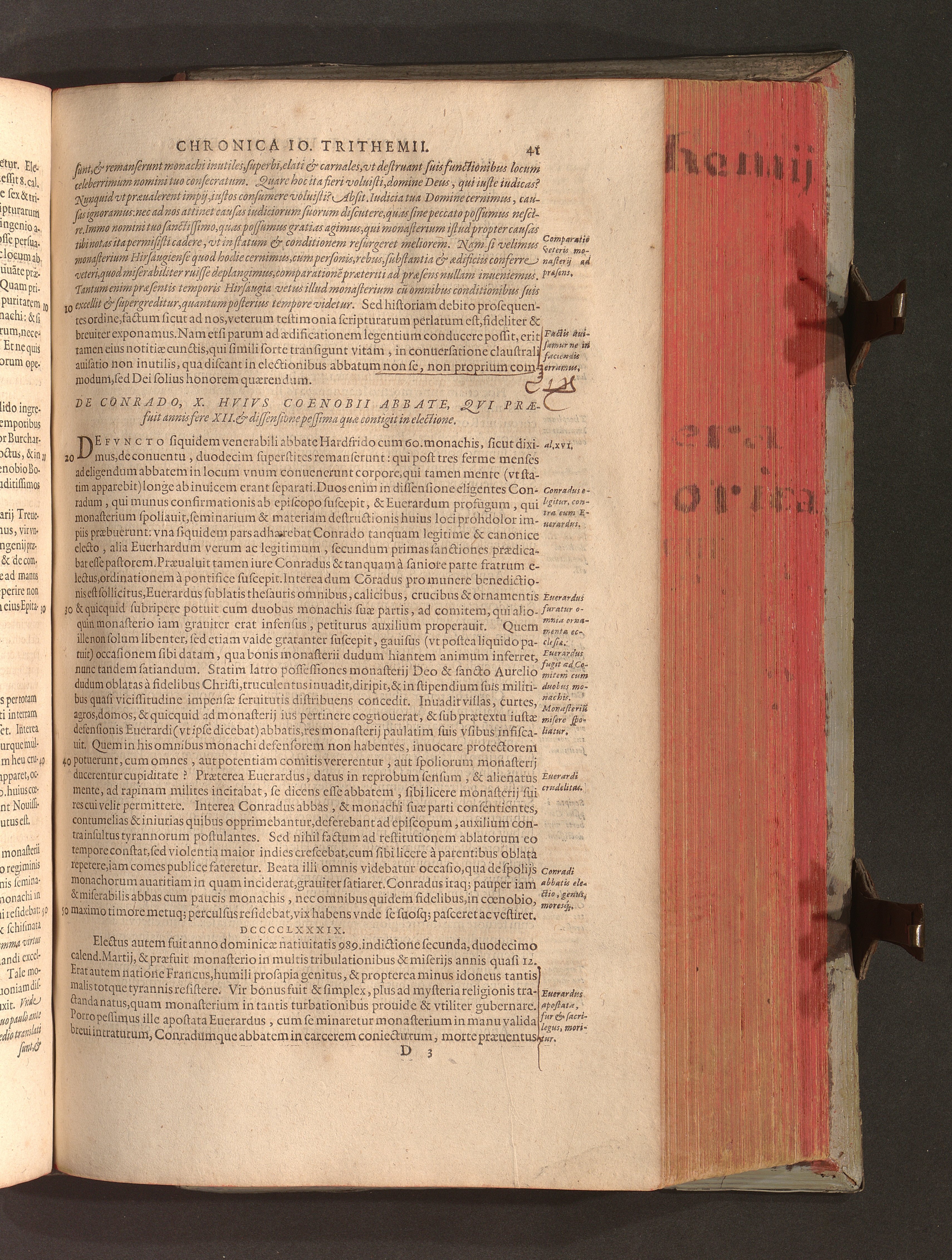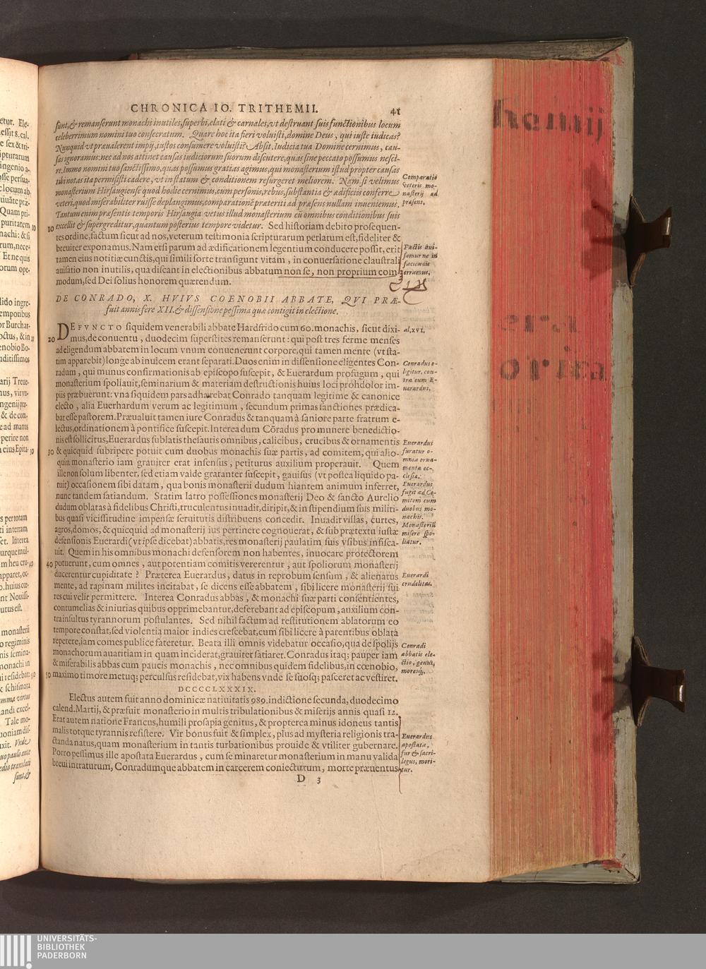 2 (1601) Iohannis Trithemii Spanheimensis Primo, Deinde D. Iacobi Maioris Apvd Herbipolin Abbatis, viri suo æuo doctissimi Secvndæ Partis Chronica Insignia Dvo : I. Coenobii Hirsavgiensis, Diœcesis Spirensis: eius fundationem & progressum ab Anno Christi DCCCXXX. vsque ad Annum MCCCLXX. II. Coenobii Spanheimensis, Diœcesis Moguntinensis: eius fundationem & progressum ab Anno Christi MCXXIIII. vsque ad Annum MDXXVI. vel potius res ab octo illis sæculis in tota Ecclesia & Imperio memorabiliter gestas, complectens; Qvorvm Privs Collatione Archetypi Ipsivs Auctoris manuscripti correctius & plenius; posterius verò istud nunc primùm è tenebris erutum, ob insignem vtilitatem optimâ fide in lucem editur; Accedunt Epistolæ eiusdem Familiares, ab excessu eius de cœnobio Spanheimensi ad Principes clarosque viros scriptæ, historiis eius æui referctæ