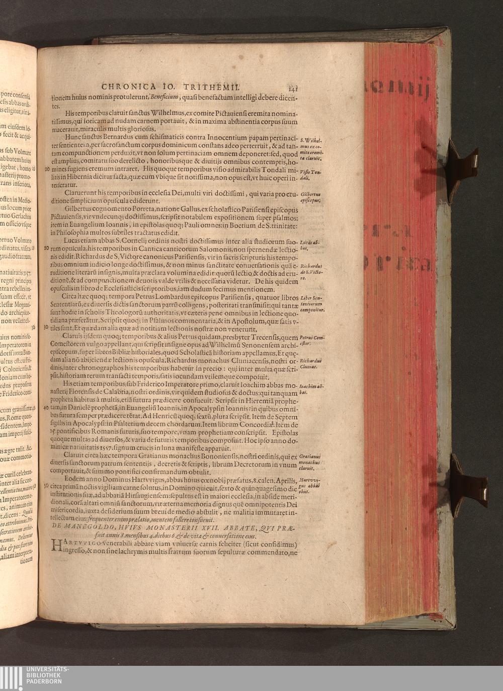 2 (1601) Iohannis Trithemii Spanheimensis Primo, Deinde D. Iacobi Maioris Apvd Herbipolin Abbatis, viri suo æuo doctissimi Secvndæ Partis Chronica Insignia Dvo : I. Coenobii Hirsavgiensis, Diœcesis Spirensis: eius fundationem & progressum ab Anno Christi DCCCXXX. vsque ad Annum MCCCLXX. II. Coenobii Spanheimensis, Diœcesis Moguntinensis: eius fundationem & progressum ab Anno Christi MCXXIIII. vsque ad Annum MDXXVI. vel potius res ab octo illis sæculis in tota Ecclesia & Imperio memorabiliter gestas, complectens; Qvorvm Privs Collatione Archetypi Ipsivs Auctoris manuscripti correctius & plenius; posterius verò istud nunc primùm è tenebris erutum, ob insignem vtilitatem optimâ fide in lucem editur; Accedunt Epistolæ eiusdem Familiares, ab excessu eius de cœnobio Spanheimensi ad Principes clarosque viros scriptæ, historiis eius æui referctæ