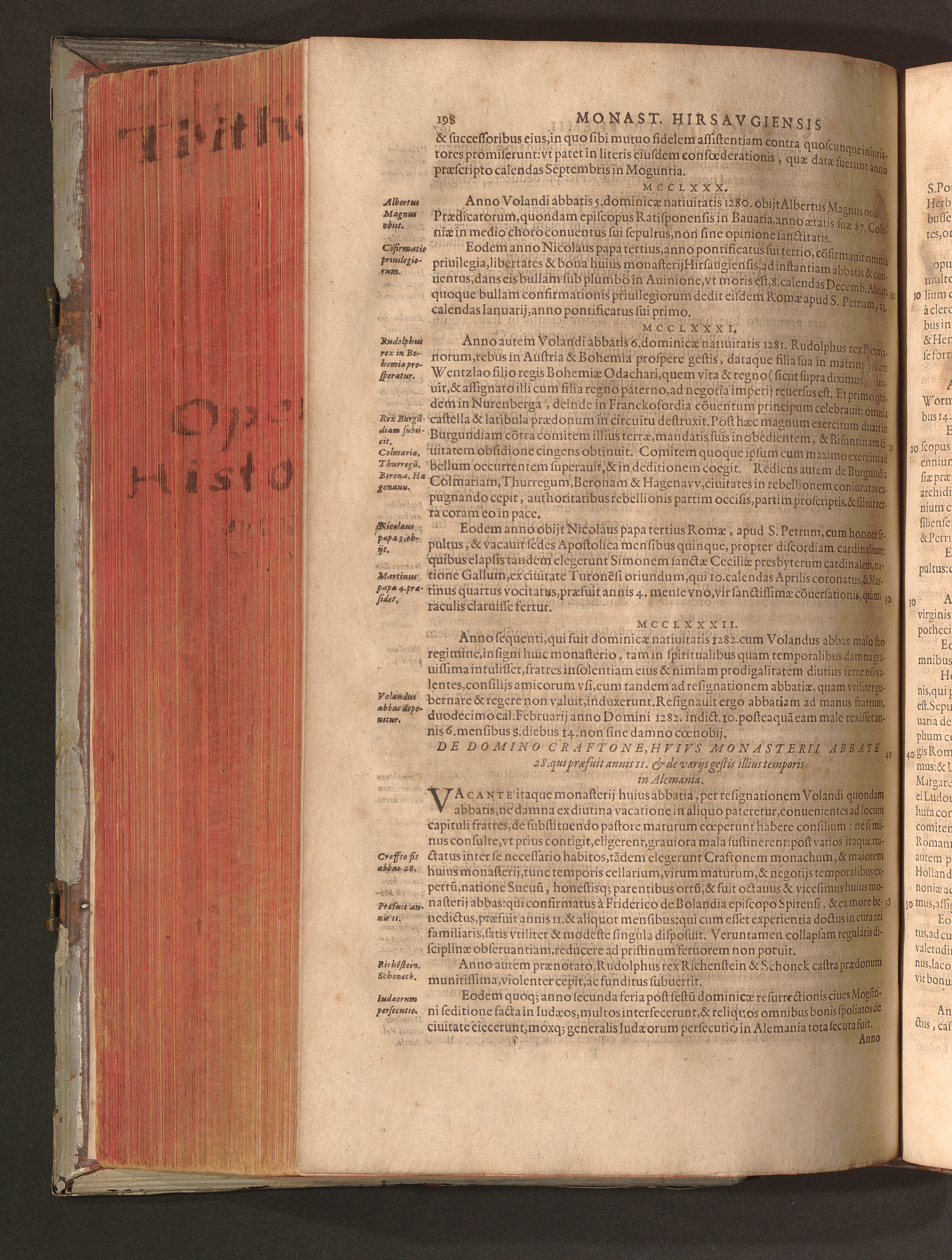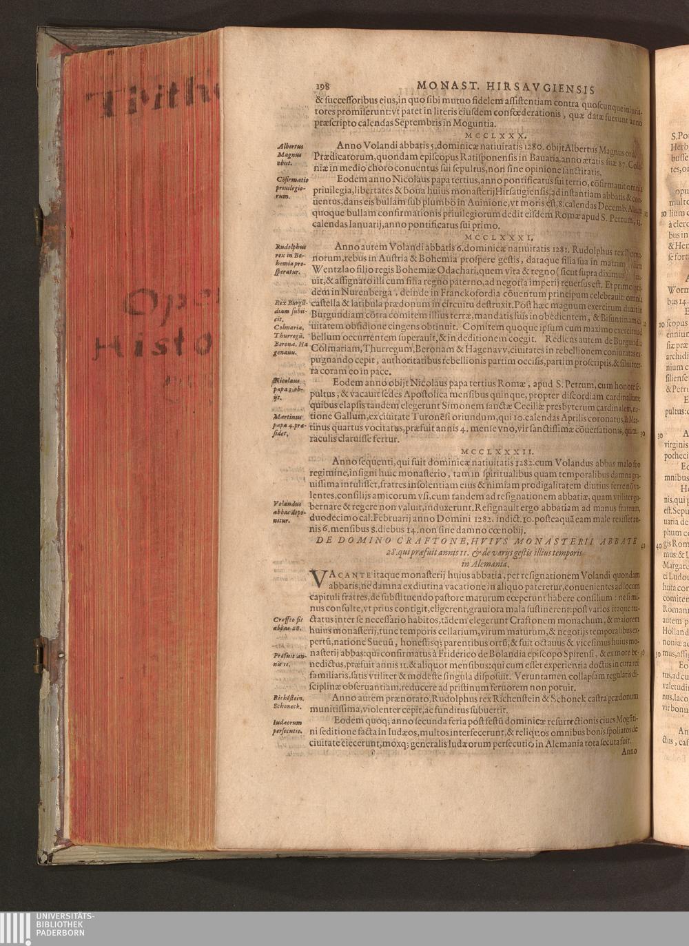 2 (1601) Iohannis Trithemii Spanheimensis Primo, Deinde D. Iacobi Maioris Apvd Herbipolin Abbatis, viri suo æuo doctissimi Secvndæ Partis Chronica Insignia Dvo : I. Coenobii Hirsavgiensis, Diœcesis Spirensis: eius fundationem & progressum ab Anno Christi DCCCXXX. vsque ad Annum MCCCLXX. II. Coenobii Spanheimensis, Diœcesis Moguntinensis: eius fundationem & progressum ab Anno Christi MCXXIIII. vsque ad Annum MDXXVI. vel potius res ab octo illis sæculis in tota Ecclesia & Imperio memorabiliter gestas, complectens; Qvorvm Privs Collatione Archetypi Ipsivs Auctoris manuscripti correctius & plenius; posterius verò istud nunc primùm è tenebris erutum, ob insignem vtilitatem optimâ fide in lucem editur; Accedunt Epistolæ eiusdem Familiares, ab excessu eius de cœnobio Spanheimensi ad Principes clarosque viros scriptæ, historiis eius æui referctæ