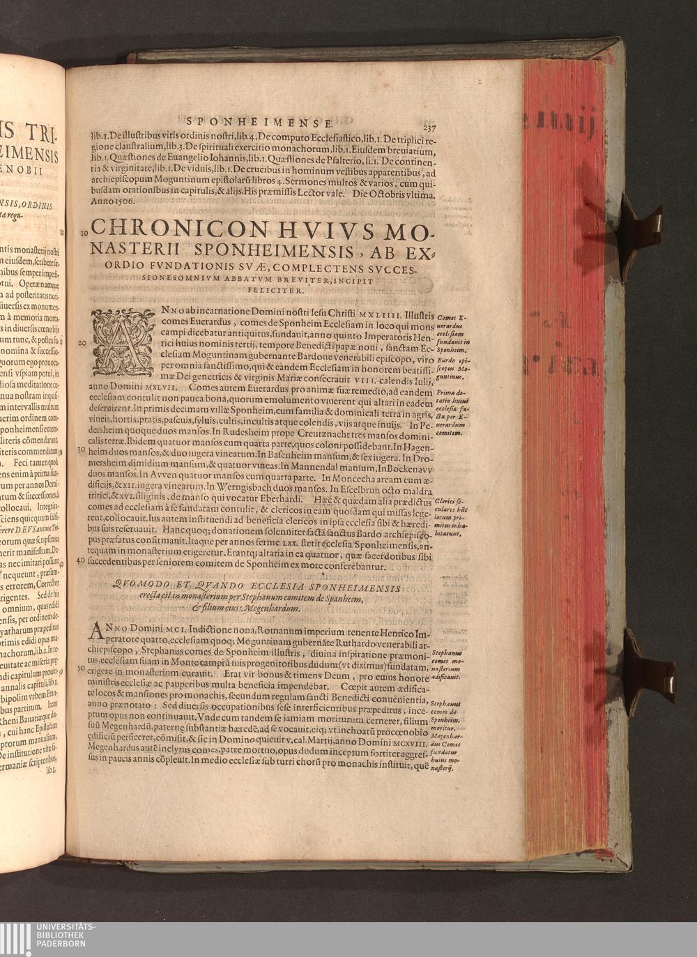 2 (1601) Iohannis Trithemii Spanheimensis Primo, Deinde D. Iacobi Maioris Apvd Herbipolin Abbatis, viri suo æuo doctissimi Secvndæ Partis Chronica Insignia Dvo : I. Coenobii Hirsavgiensis, Diœcesis Spirensis: eius fundationem & progressum ab Anno Christi DCCCXXX. vsque ad Annum MCCCLXX. II. Coenobii Spanheimensis, Diœcesis Moguntinensis: eius fundationem & progressum ab Anno Christi MCXXIIII. vsque ad Annum MDXXVI. vel potius res ab octo illis sæculis in tota Ecclesia & Imperio memorabiliter gestas, complectens; Qvorvm Privs Collatione Archetypi Ipsivs Auctoris manuscripti correctius & plenius; posterius verò istud nunc primùm è tenebris erutum, ob insignem vtilitatem optimâ fide in lucem editur; Accedunt Epistolæ eiusdem Familiares, ab excessu eius de cœnobio Spanheimensi ad Principes clarosque viros scriptæ, historiis eius æui referctæ