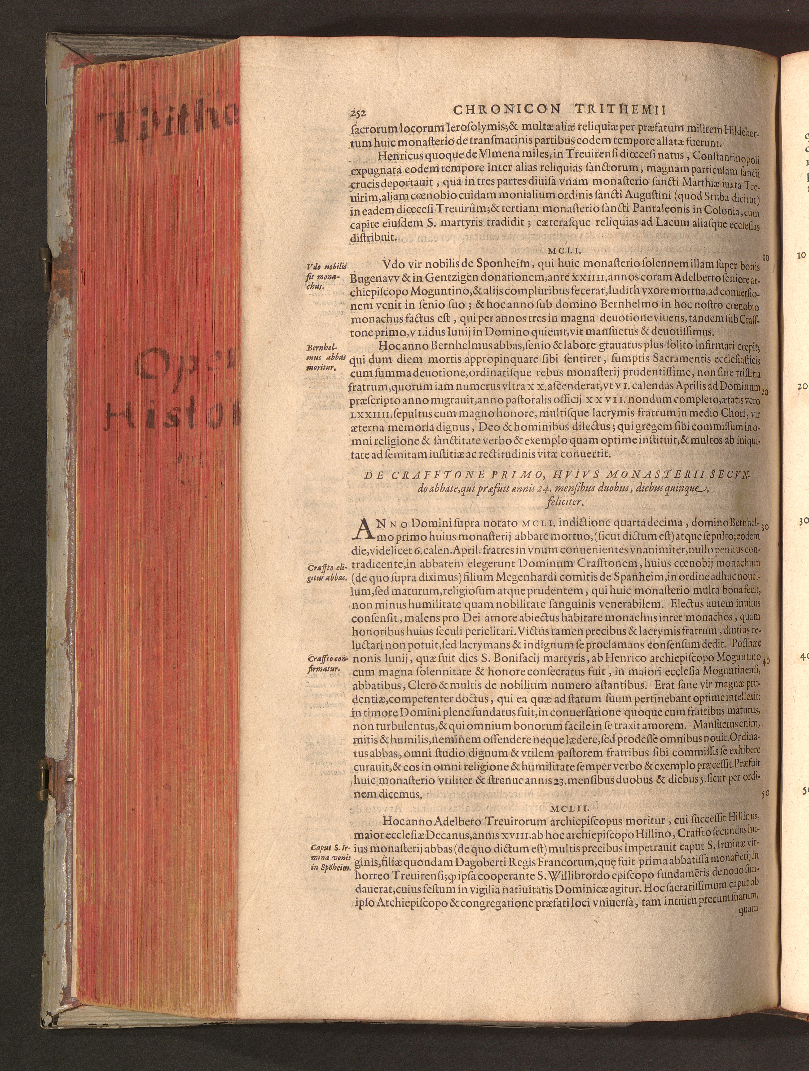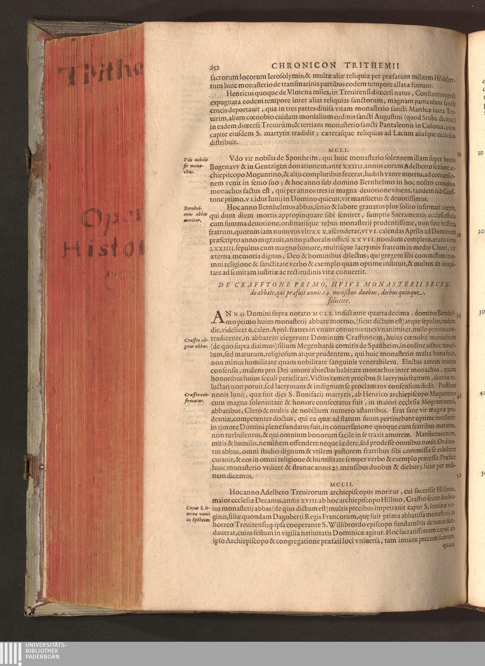 2 (1601) Iohannis Trithemii Spanheimensis Primo, Deinde D. Iacobi Maioris Apvd Herbipolin Abbatis, viri suo æuo doctissimi Secvndæ Partis Chronica Insignia Dvo : I. Coenobii Hirsavgiensis, Diœcesis Spirensis: eius fundationem & progressum ab Anno Christi DCCCXXX. vsque ad Annum MCCCLXX. II. Coenobii Spanheimensis, Diœcesis Moguntinensis: eius fundationem & progressum ab Anno Christi MCXXIIII. vsque ad Annum MDXXVI. vel potius res ab octo illis sæculis in tota Ecclesia & Imperio memorabiliter gestas, complectens; Qvorvm Privs Collatione Archetypi Ipsivs Auctoris manuscripti correctius & plenius; posterius verò istud nunc primùm è tenebris erutum, ob insignem vtilitatem optimâ fide in lucem editur; Accedunt Epistolæ eiusdem Familiares, ab excessu eius de cœnobio Spanheimensi ad Principes clarosque viros scriptæ, historiis eius æui referctæ