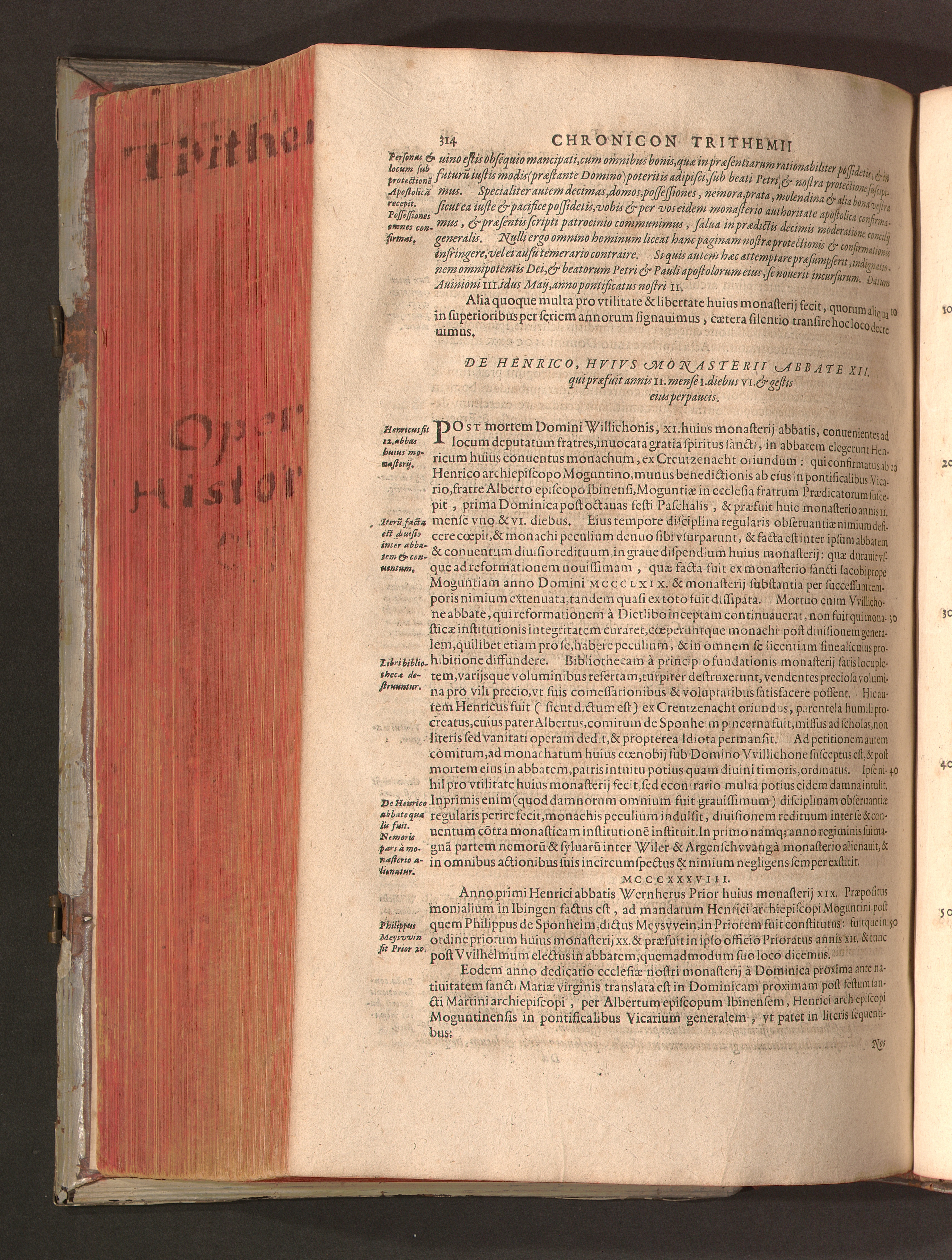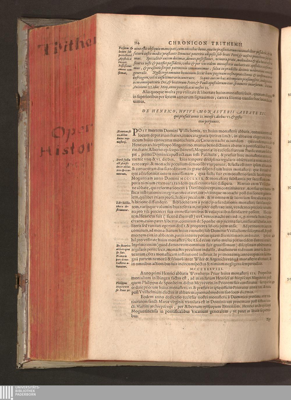 2 (1601) Iohannis Trithemii Spanheimensis Primo, Deinde D. Iacobi Maioris Apvd Herbipolin Abbatis, viri suo æuo doctissimi Secvndæ Partis Chronica Insignia Dvo : I. Coenobii Hirsavgiensis, Diœcesis Spirensis: eius fundationem & progressum ab Anno Christi DCCCXXX. vsque ad Annum MCCCLXX. II. Coenobii Spanheimensis, Diœcesis Moguntinensis: eius fundationem & progressum ab Anno Christi MCXXIIII. vsque ad Annum MDXXVI. vel potius res ab octo illis sæculis in tota Ecclesia & Imperio memorabiliter gestas, complectens; Qvorvm Privs Collatione Archetypi Ipsivs Auctoris manuscripti correctius & plenius; posterius verò istud nunc primùm è tenebris erutum, ob insignem vtilitatem optimâ fide in lucem editur; Accedunt Epistolæ eiusdem Familiares, ab excessu eius de cœnobio Spanheimensi ad Principes clarosque viros scriptæ, historiis eius æui referctæ