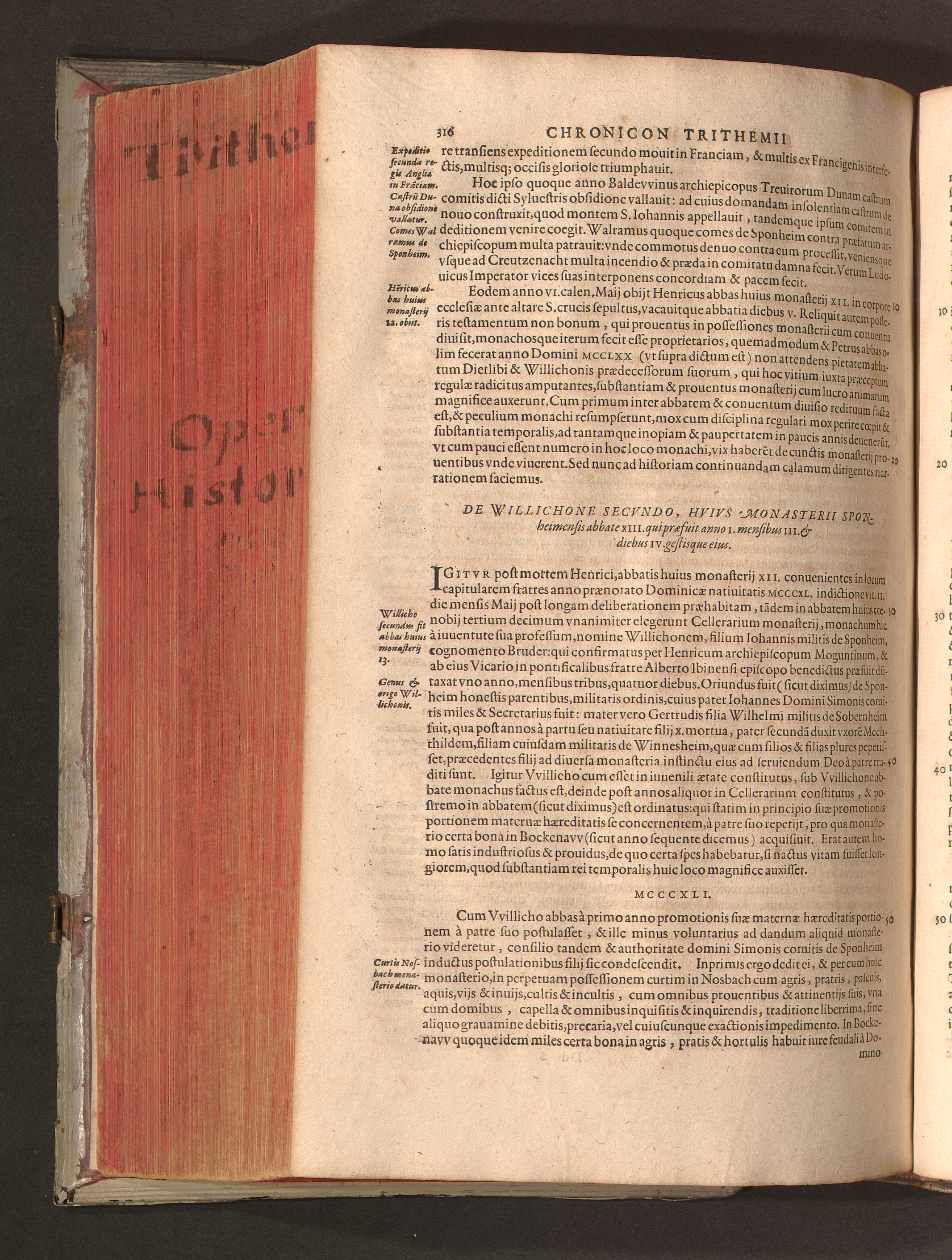 2 (1601) Iohannis Trithemii Spanheimensis Primo, Deinde D. Iacobi Maioris Apvd Herbipolin Abbatis, viri suo æuo doctissimi Secvndæ Partis Chronica Insignia Dvo : I. Coenobii Hirsavgiensis, Diœcesis Spirensis: eius fundationem & progressum ab Anno Christi DCCCXXX. vsque ad Annum MCCCLXX. II. Coenobii Spanheimensis, Diœcesis Moguntinensis: eius fundationem & progressum ab Anno Christi MCXXIIII. vsque ad Annum MDXXVI. vel potius res ab octo illis sæculis in tota Ecclesia & Imperio memorabiliter gestas, complectens; Qvorvm Privs Collatione Archetypi Ipsivs Auctoris manuscripti correctius & plenius; posterius verò istud nunc primùm è tenebris erutum, ob insignem vtilitatem optimâ fide in lucem editur; Accedunt Epistolæ eiusdem Familiares, ab excessu eius de cœnobio Spanheimensi ad Principes clarosque viros scriptæ, historiis eius æui referctæ