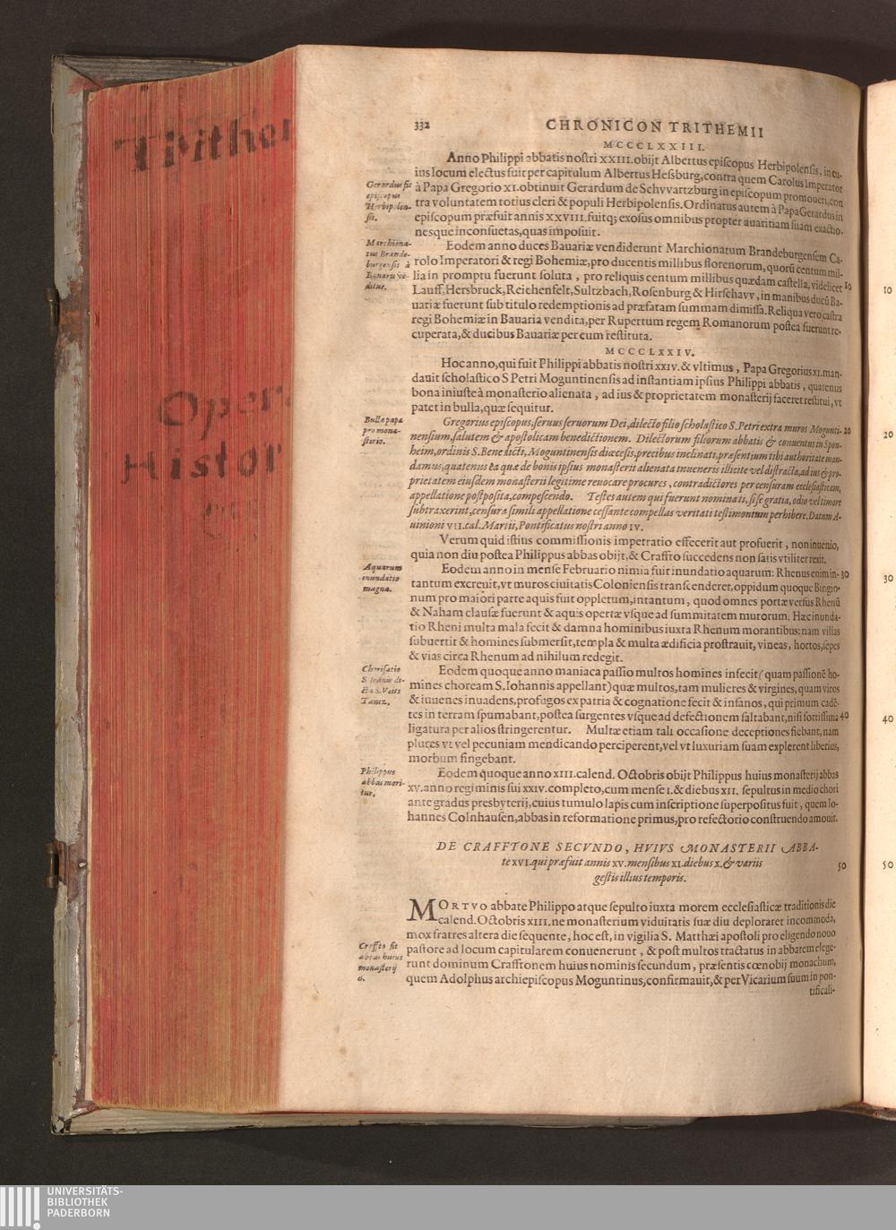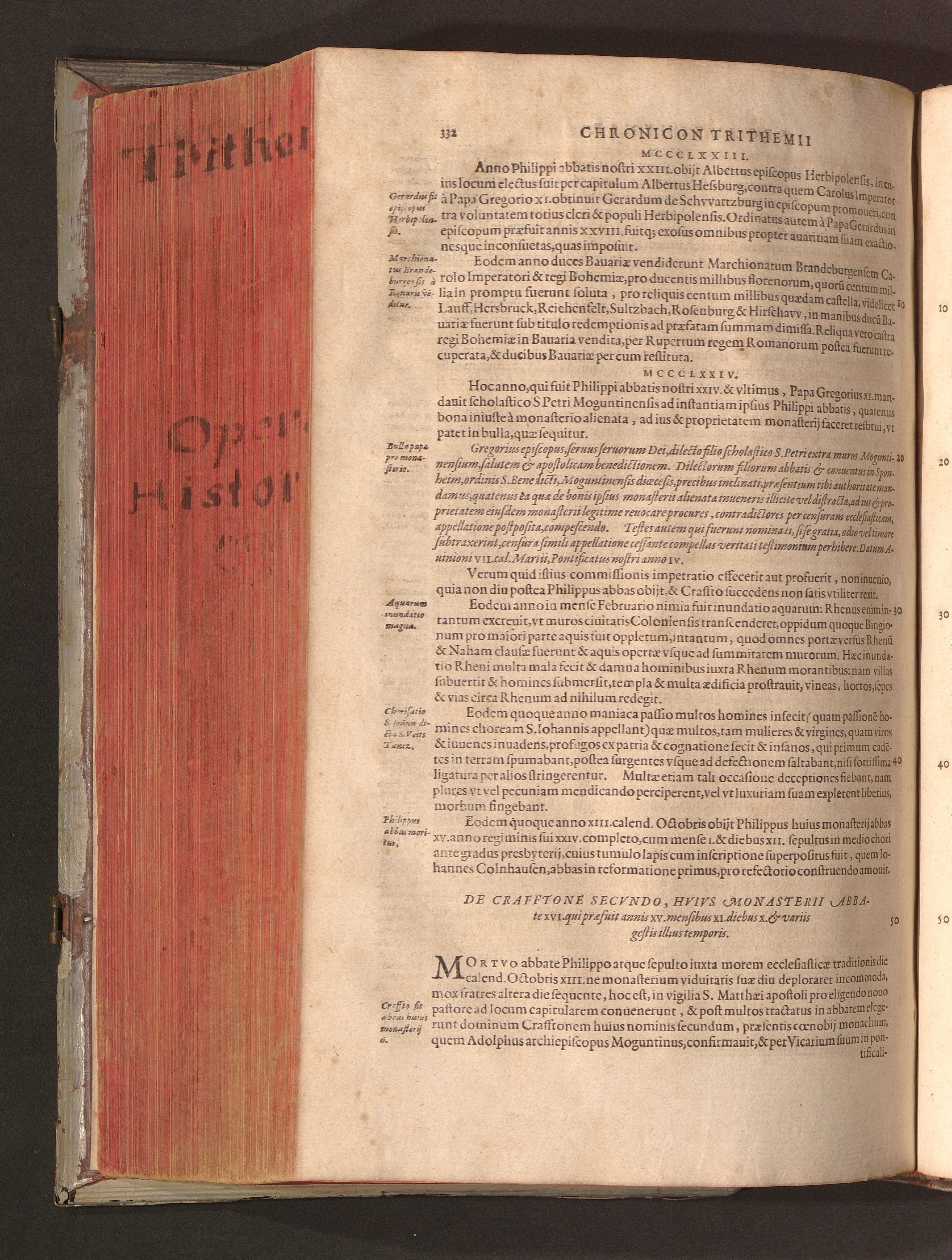 2 (1601) Iohannis Trithemii Spanheimensis Primo, Deinde D. Iacobi Maioris Apvd Herbipolin Abbatis, viri suo æuo doctissimi Secvndæ Partis Chronica Insignia Dvo : I. Coenobii Hirsavgiensis, Diœcesis Spirensis: eius fundationem & progressum ab Anno Christi DCCCXXX. vsque ad Annum MCCCLXX. II. Coenobii Spanheimensis, Diœcesis Moguntinensis: eius fundationem & progressum ab Anno Christi MCXXIIII. vsque ad Annum MDXXVI. vel potius res ab octo illis sæculis in tota Ecclesia & Imperio memorabiliter gestas, complectens; Qvorvm Privs Collatione Archetypi Ipsivs Auctoris manuscripti correctius & plenius; posterius verò istud nunc primùm è tenebris erutum, ob insignem vtilitatem optimâ fide in lucem editur; Accedunt Epistolæ eiusdem Familiares, ab excessu eius de cœnobio Spanheimensi ad Principes clarosque viros scriptæ, historiis eius æui referctæ