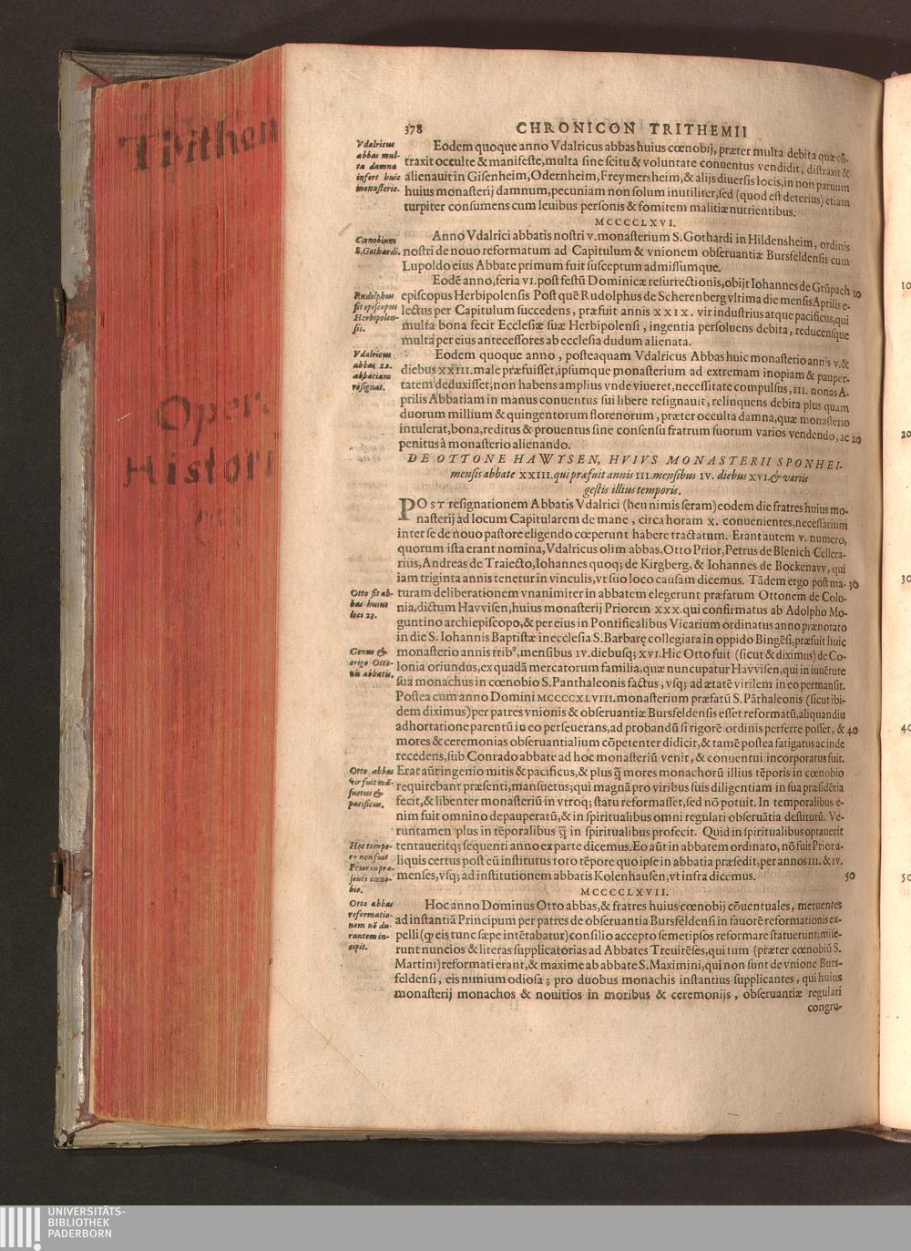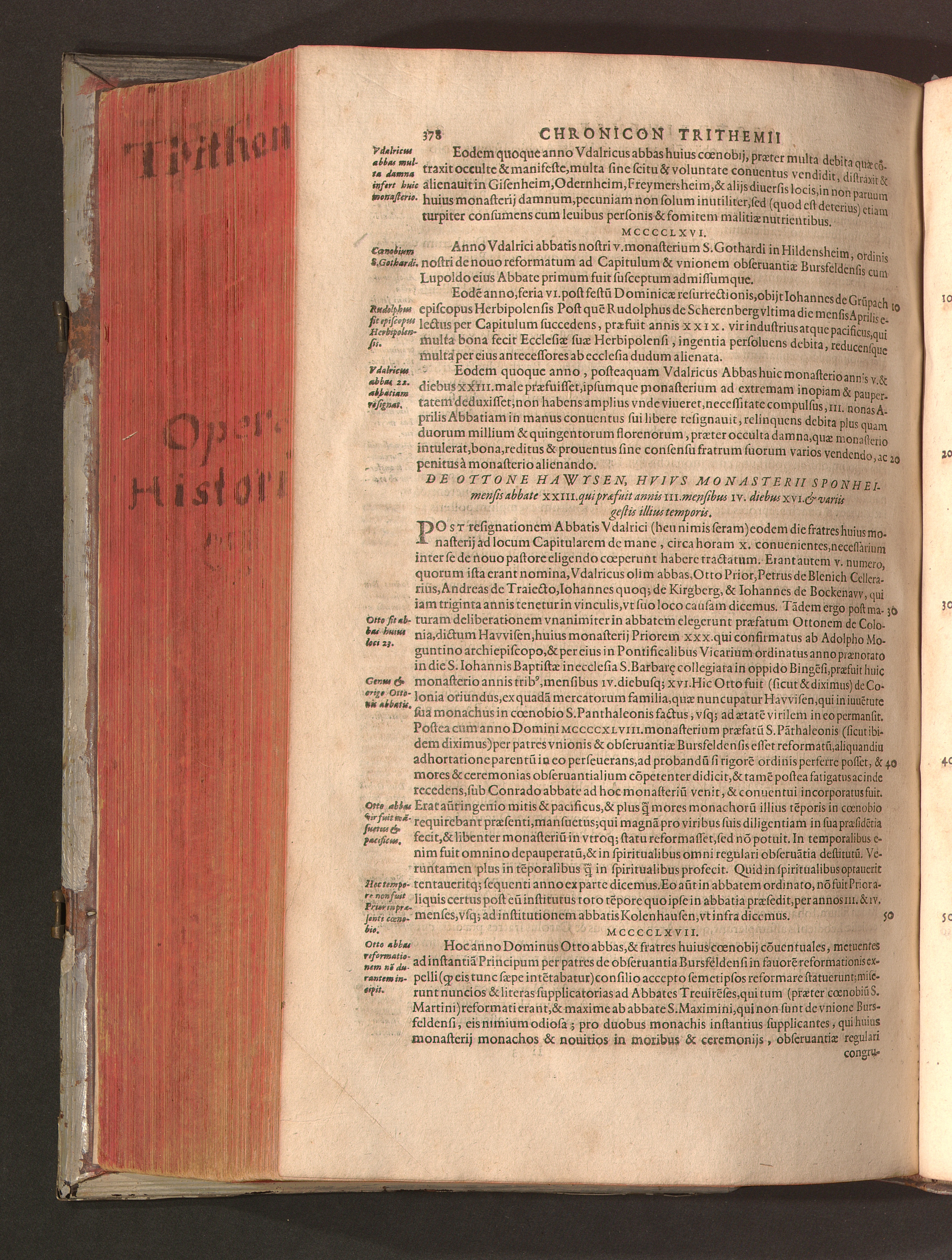 2 (1601) Iohannis Trithemii Spanheimensis Primo, Deinde D. Iacobi Maioris Apvd Herbipolin Abbatis, viri suo æuo doctissimi Secvndæ Partis Chronica Insignia Dvo : I. Coenobii Hirsavgiensis, Diœcesis Spirensis: eius fundationem & progressum ab Anno Christi DCCCXXX. vsque ad Annum MCCCLXX. II. Coenobii Spanheimensis, Diœcesis Moguntinensis: eius fundationem & progressum ab Anno Christi MCXXIIII. vsque ad Annum MDXXVI. vel potius res ab octo illis sæculis in tota Ecclesia & Imperio memorabiliter gestas, complectens; Qvorvm Privs Collatione Archetypi Ipsivs Auctoris manuscripti correctius & plenius; posterius verò istud nunc primùm è tenebris erutum, ob insignem vtilitatem optimâ fide in lucem editur; Accedunt Epistolæ eiusdem Familiares, ab excessu eius de cœnobio Spanheimensi ad Principes clarosque viros scriptæ, historiis eius æui referctæ