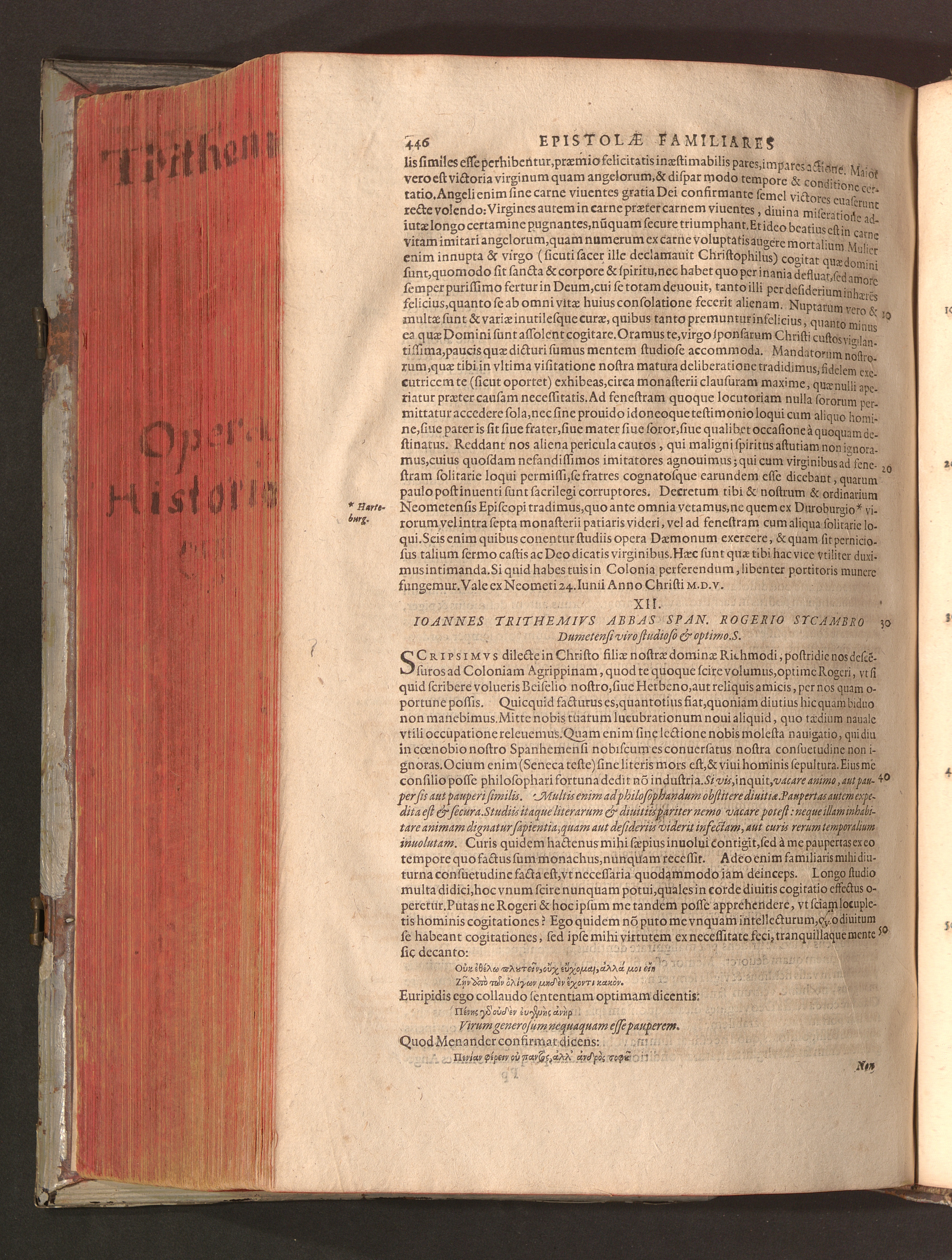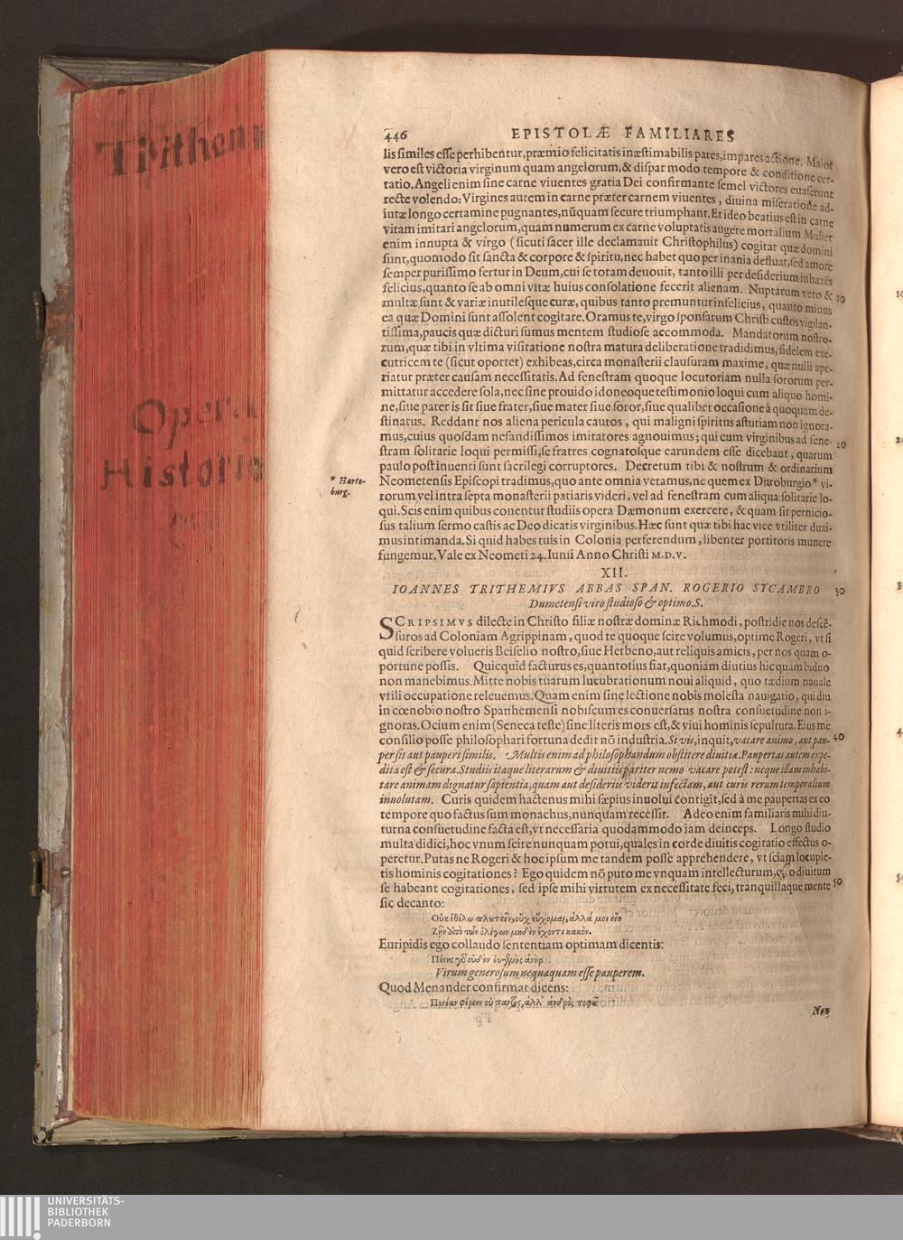 2 (1601) Iohannis Trithemii Spanheimensis Primo, Deinde D. Iacobi Maioris Apvd Herbipolin Abbatis, viri suo æuo doctissimi Secvndæ Partis Chronica Insignia Dvo : I. Coenobii Hirsavgiensis, Diœcesis Spirensis: eius fundationem & progressum ab Anno Christi DCCCXXX. vsque ad Annum MCCCLXX. II. Coenobii Spanheimensis, Diœcesis Moguntinensis: eius fundationem & progressum ab Anno Christi MCXXIIII. vsque ad Annum MDXXVI. vel potius res ab octo illis sæculis in tota Ecclesia & Imperio memorabiliter gestas, complectens; Qvorvm Privs Collatione Archetypi Ipsivs Auctoris manuscripti correctius & plenius; posterius verò istud nunc primùm è tenebris erutum, ob insignem vtilitatem optimâ fide in lucem editur; Accedunt Epistolæ eiusdem Familiares, ab excessu eius de cœnobio Spanheimensi ad Principes clarosque viros scriptæ, historiis eius æui referctæ