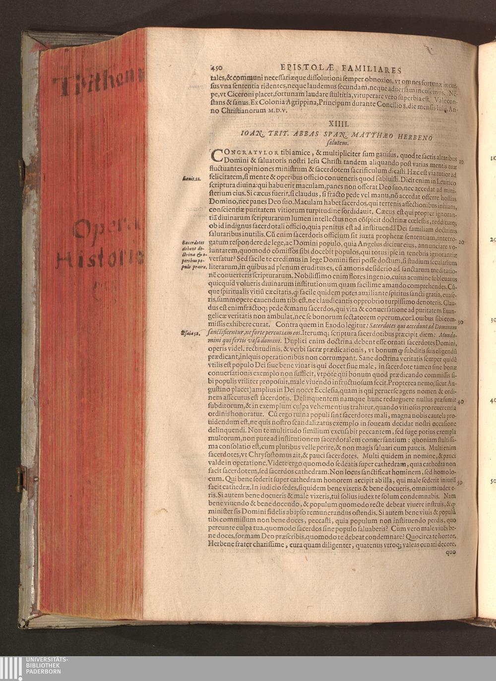 2 (1601) Iohannis Trithemii Spanheimensis Primo, Deinde D. Iacobi Maioris Apvd Herbipolin Abbatis, viri suo æuo doctissimi Secvndæ Partis Chronica Insignia Dvo : I. Coenobii Hirsavgiensis, Diœcesis Spirensis: eius fundationem & progressum ab Anno Christi DCCCXXX. vsque ad Annum MCCCLXX. II. Coenobii Spanheimensis, Diœcesis Moguntinensis: eius fundationem & progressum ab Anno Christi MCXXIIII. vsque ad Annum MDXXVI. vel potius res ab octo illis sæculis in tota Ecclesia & Imperio memorabiliter gestas, complectens; Qvorvm Privs Collatione Archetypi Ipsivs Auctoris manuscripti correctius & plenius; posterius verò istud nunc primùm è tenebris erutum, ob insignem vtilitatem optimâ fide in lucem editur; Accedunt Epistolæ eiusdem Familiares, ab excessu eius de cœnobio Spanheimensi ad Principes clarosque viros scriptæ, historiis eius æui referctæ