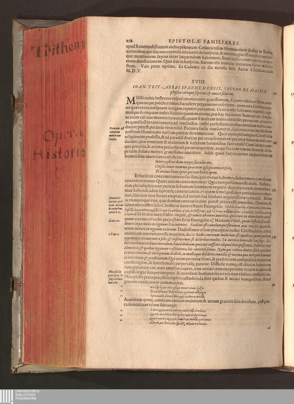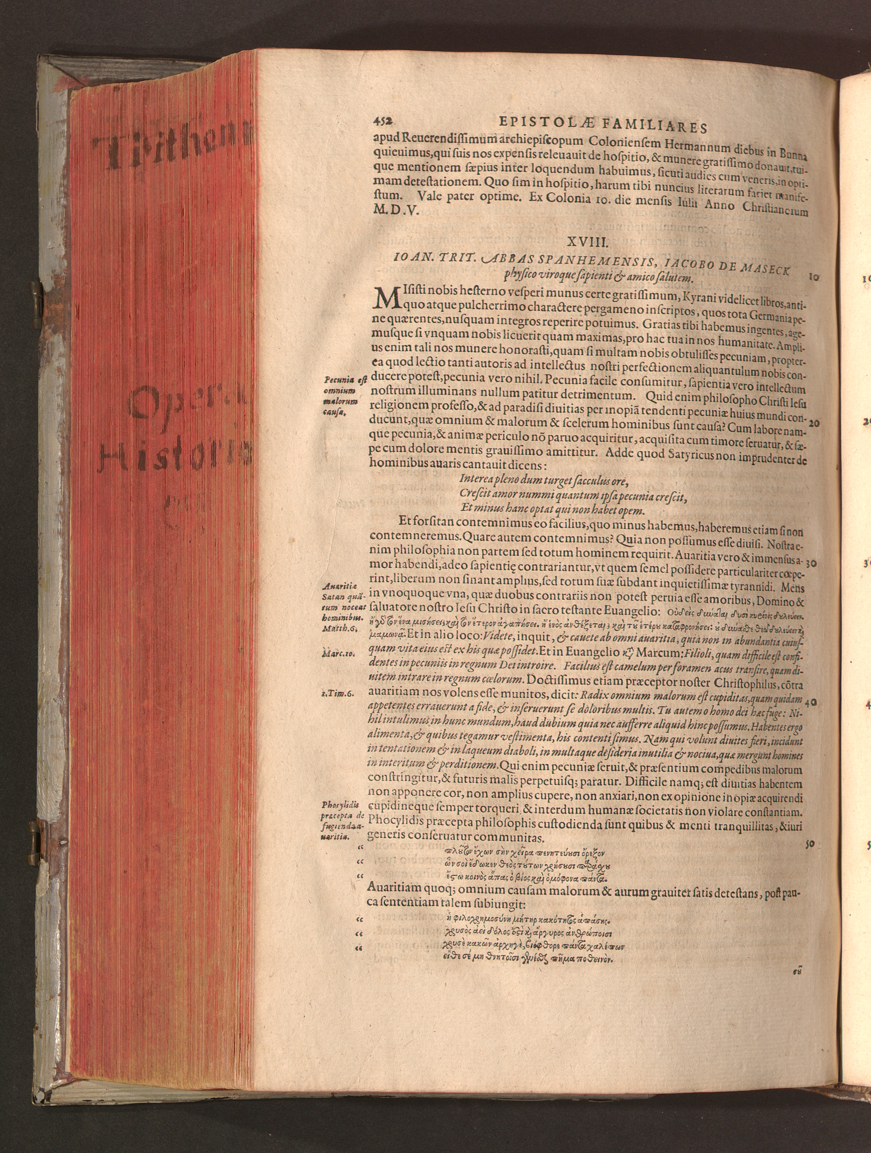 2 (1601) Iohannis Trithemii Spanheimensis Primo, Deinde D. Iacobi Maioris Apvd Herbipolin Abbatis, viri suo æuo doctissimi Secvndæ Partis Chronica Insignia Dvo : I. Coenobii Hirsavgiensis, Diœcesis Spirensis: eius fundationem & progressum ab Anno Christi DCCCXXX. vsque ad Annum MCCCLXX. II. Coenobii Spanheimensis, Diœcesis Moguntinensis: eius fundationem & progressum ab Anno Christi MCXXIIII. vsque ad Annum MDXXVI. vel potius res ab octo illis sæculis in tota Ecclesia & Imperio memorabiliter gestas, complectens; Qvorvm Privs Collatione Archetypi Ipsivs Auctoris manuscripti correctius & plenius; posterius verò istud nunc primùm è tenebris erutum, ob insignem vtilitatem optimâ fide in lucem editur; Accedunt Epistolæ eiusdem Familiares, ab excessu eius de cœnobio Spanheimensi ad Principes clarosque viros scriptæ, historiis eius æui referctæ