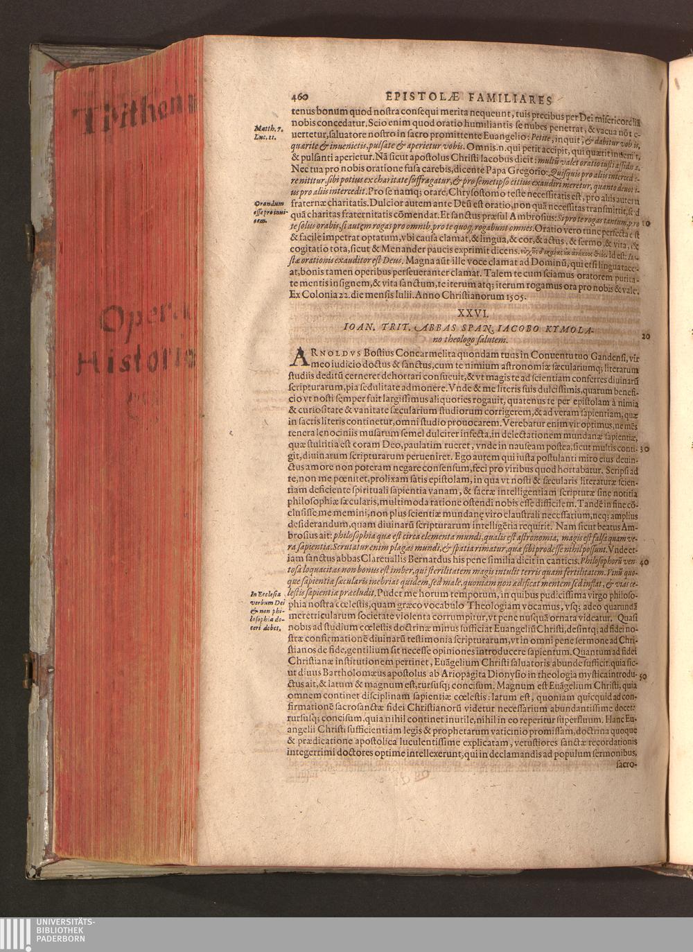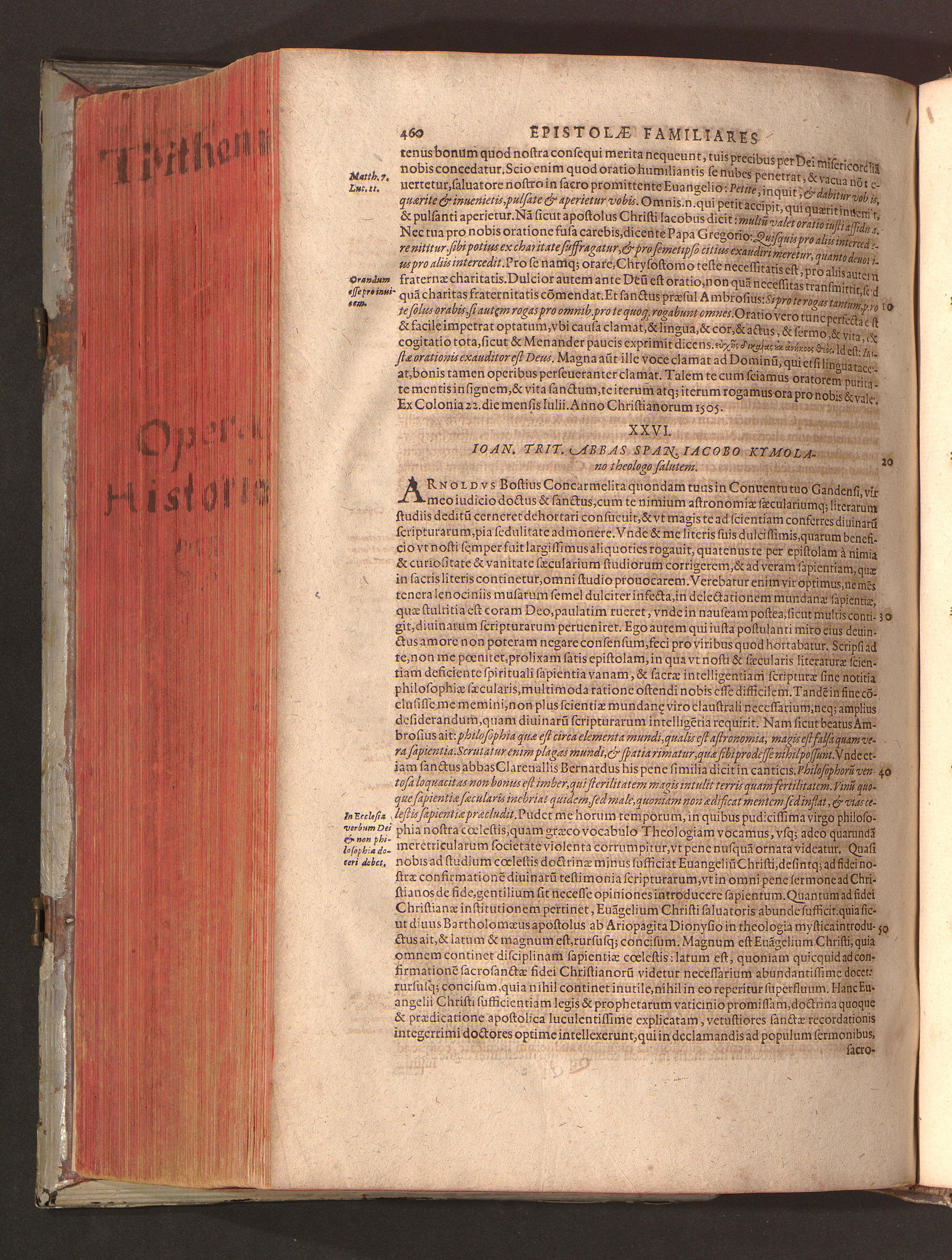 2 (1601) Iohannis Trithemii Spanheimensis Primo, Deinde D. Iacobi Maioris Apvd Herbipolin Abbatis, viri suo æuo doctissimi Secvndæ Partis Chronica Insignia Dvo : I. Coenobii Hirsavgiensis, Diœcesis Spirensis: eius fundationem & progressum ab Anno Christi DCCCXXX. vsque ad Annum MCCCLXX. II. Coenobii Spanheimensis, Diœcesis Moguntinensis: eius fundationem & progressum ab Anno Christi MCXXIIII. vsque ad Annum MDXXVI. vel potius res ab octo illis sæculis in tota Ecclesia & Imperio memorabiliter gestas, complectens; Qvorvm Privs Collatione Archetypi Ipsivs Auctoris manuscripti correctius & plenius; posterius verò istud nunc primùm è tenebris erutum, ob insignem vtilitatem optimâ fide in lucem editur; Accedunt Epistolæ eiusdem Familiares, ab excessu eius de cœnobio Spanheimensi ad Principes clarosque viros scriptæ, historiis eius æui referctæ