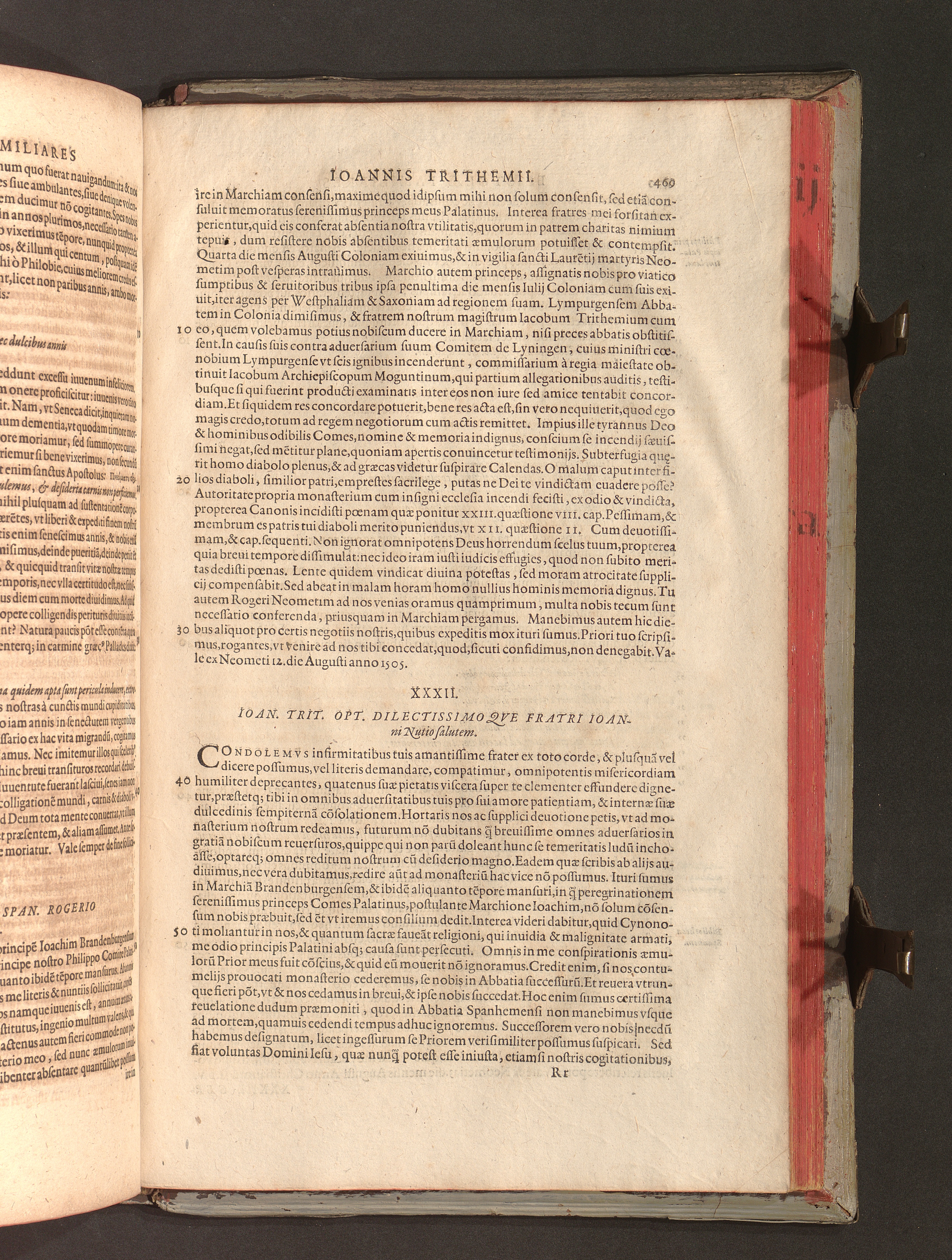 2 (1601) Iohannis Trithemii Spanheimensis Primo, Deinde D. Iacobi Maioris Apvd Herbipolin Abbatis, viri suo æuo doctissimi Secvndæ Partis Chronica Insignia Dvo : I. Coenobii Hirsavgiensis, Diœcesis Spirensis: eius fundationem & progressum ab Anno Christi DCCCXXX. vsque ad Annum MCCCLXX. II. Coenobii Spanheimensis, Diœcesis Moguntinensis: eius fundationem & progressum ab Anno Christi MCXXIIII. vsque ad Annum MDXXVI. vel potius res ab octo illis sæculis in tota Ecclesia & Imperio memorabiliter gestas, complectens; Qvorvm Privs Collatione Archetypi Ipsivs Auctoris manuscripti correctius & plenius; posterius verò istud nunc primùm è tenebris erutum, ob insignem vtilitatem optimâ fide in lucem editur; Accedunt Epistolæ eiusdem Familiares, ab excessu eius de cœnobio Spanheimensi ad Principes clarosque viros scriptæ, historiis eius æui referctæ