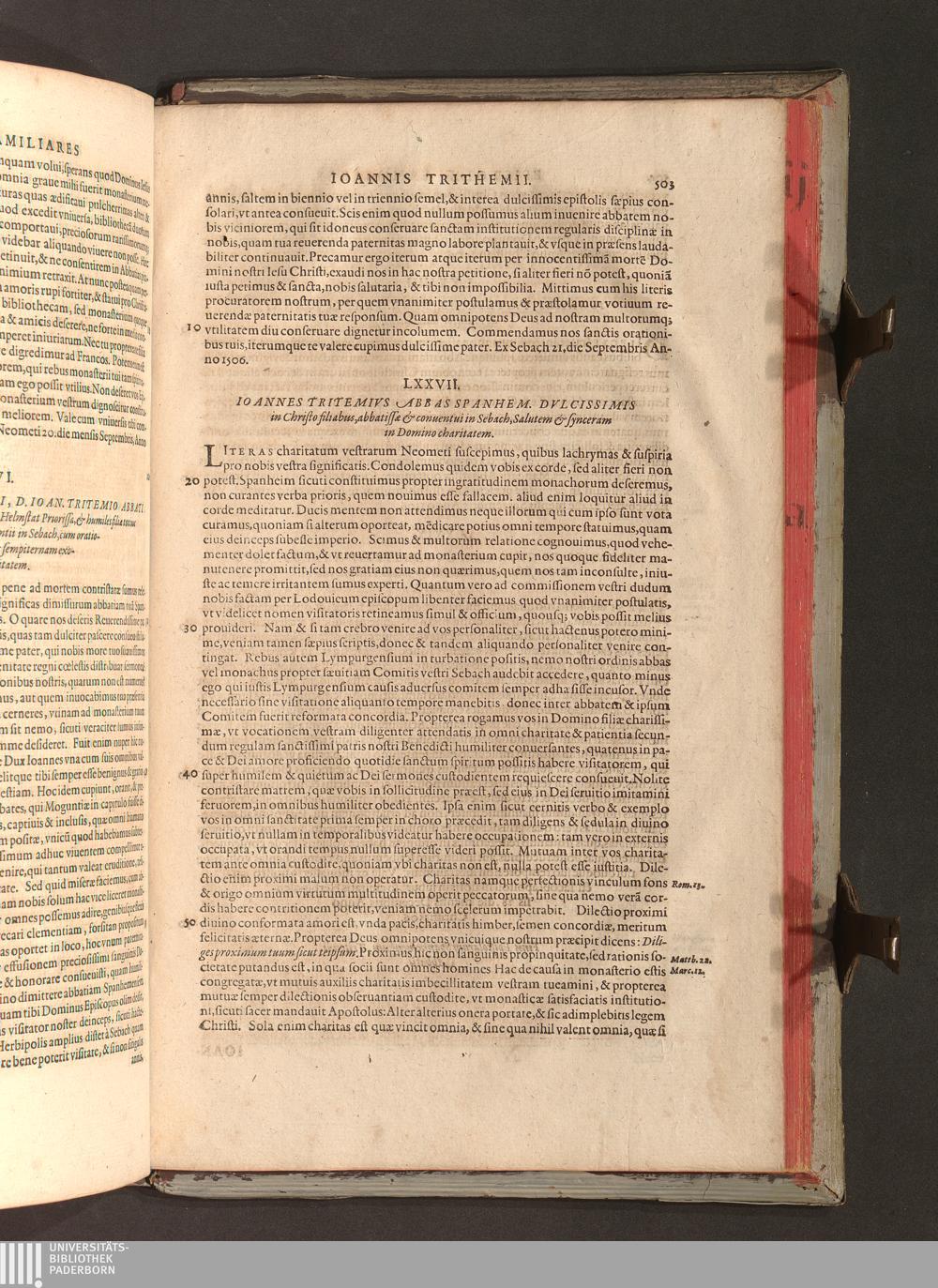2 (1601) Iohannis Trithemii Spanheimensis Primo, Deinde D. Iacobi Maioris Apvd Herbipolin Abbatis, viri suo æuo doctissimi Secvndæ Partis Chronica Insignia Dvo : I. Coenobii Hirsavgiensis, Diœcesis Spirensis: eius fundationem & progressum ab Anno Christi DCCCXXX. vsque ad Annum MCCCLXX. II. Coenobii Spanheimensis, Diœcesis Moguntinensis: eius fundationem & progressum ab Anno Christi MCXXIIII. vsque ad Annum MDXXVI. vel potius res ab octo illis sæculis in tota Ecclesia & Imperio memorabiliter gestas, complectens; Qvorvm Privs Collatione Archetypi Ipsivs Auctoris manuscripti correctius & plenius; posterius verò istud nunc primùm è tenebris erutum, ob insignem vtilitatem optimâ fide in lucem editur; Accedunt Epistolæ eiusdem Familiares, ab excessu eius de cœnobio Spanheimensi ad Principes clarosque viros scriptæ, historiis eius æui referctæ