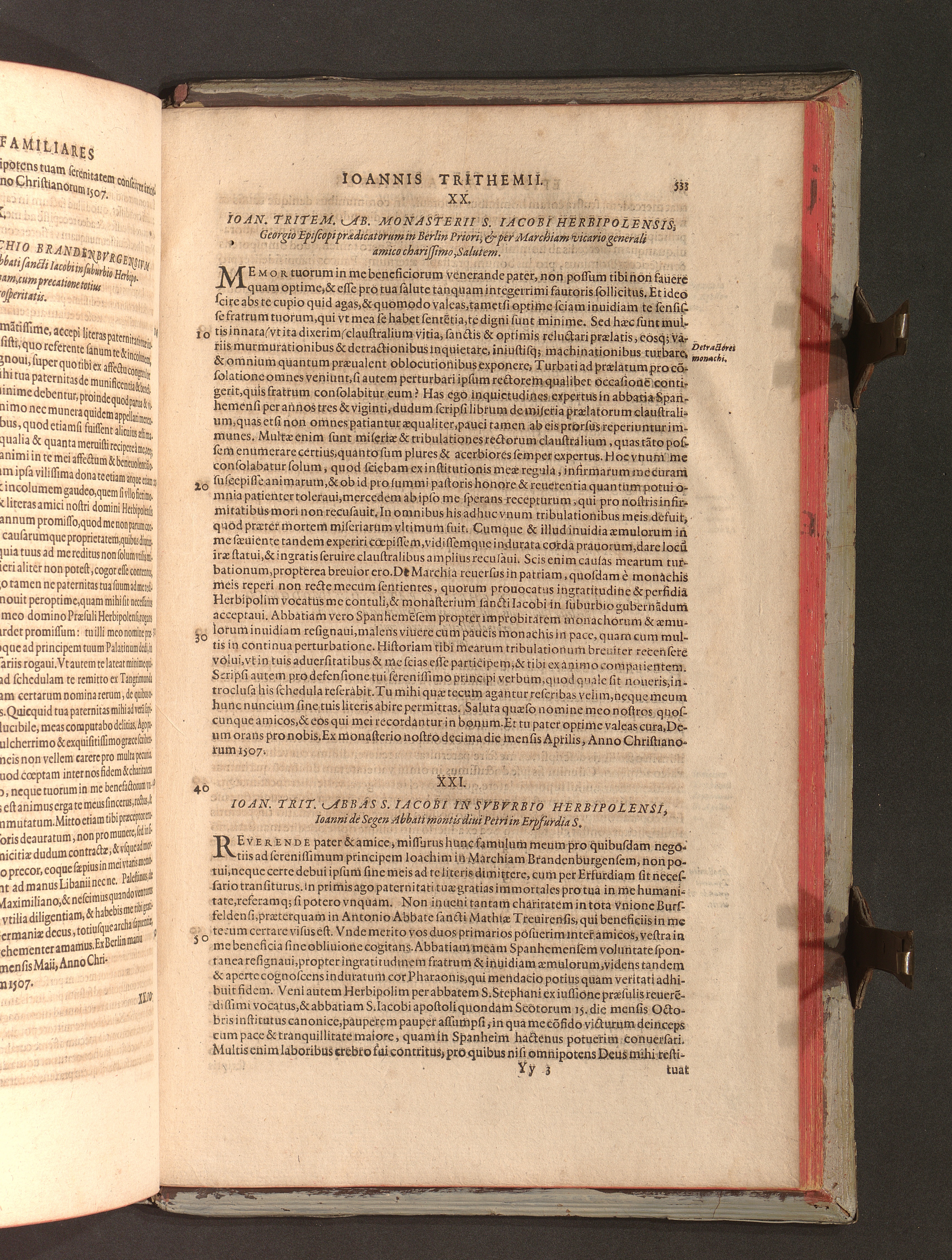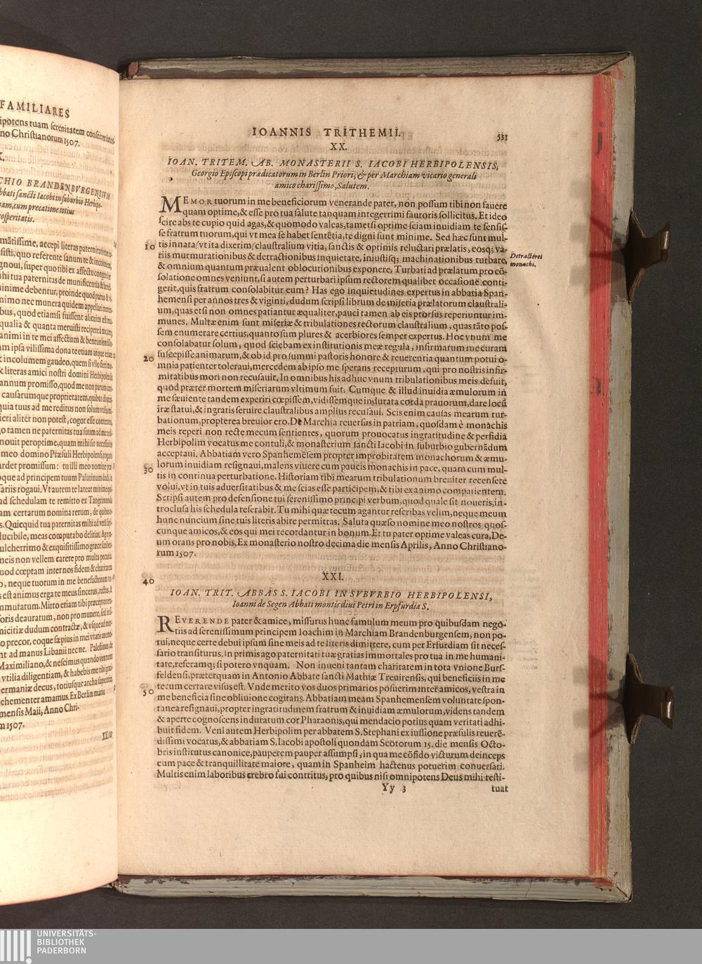 2 (1601) Iohannis Trithemii Spanheimensis Primo, Deinde D. Iacobi Maioris Apvd Herbipolin Abbatis, viri suo æuo doctissimi Secvndæ Partis Chronica Insignia Dvo : I. Coenobii Hirsavgiensis, Diœcesis Spirensis: eius fundationem & progressum ab Anno Christi DCCCXXX. vsque ad Annum MCCCLXX. II. Coenobii Spanheimensis, Diœcesis Moguntinensis: eius fundationem & progressum ab Anno Christi MCXXIIII. vsque ad Annum MDXXVI. vel potius res ab octo illis sæculis in tota Ecclesia & Imperio memorabiliter gestas, complectens; Qvorvm Privs Collatione Archetypi Ipsivs Auctoris manuscripti correctius & plenius; posterius verò istud nunc primùm è tenebris erutum, ob insignem vtilitatem optimâ fide in lucem editur; Accedunt Epistolæ eiusdem Familiares, ab excessu eius de cœnobio Spanheimensi ad Principes clarosque viros scriptæ, historiis eius æui referctæ