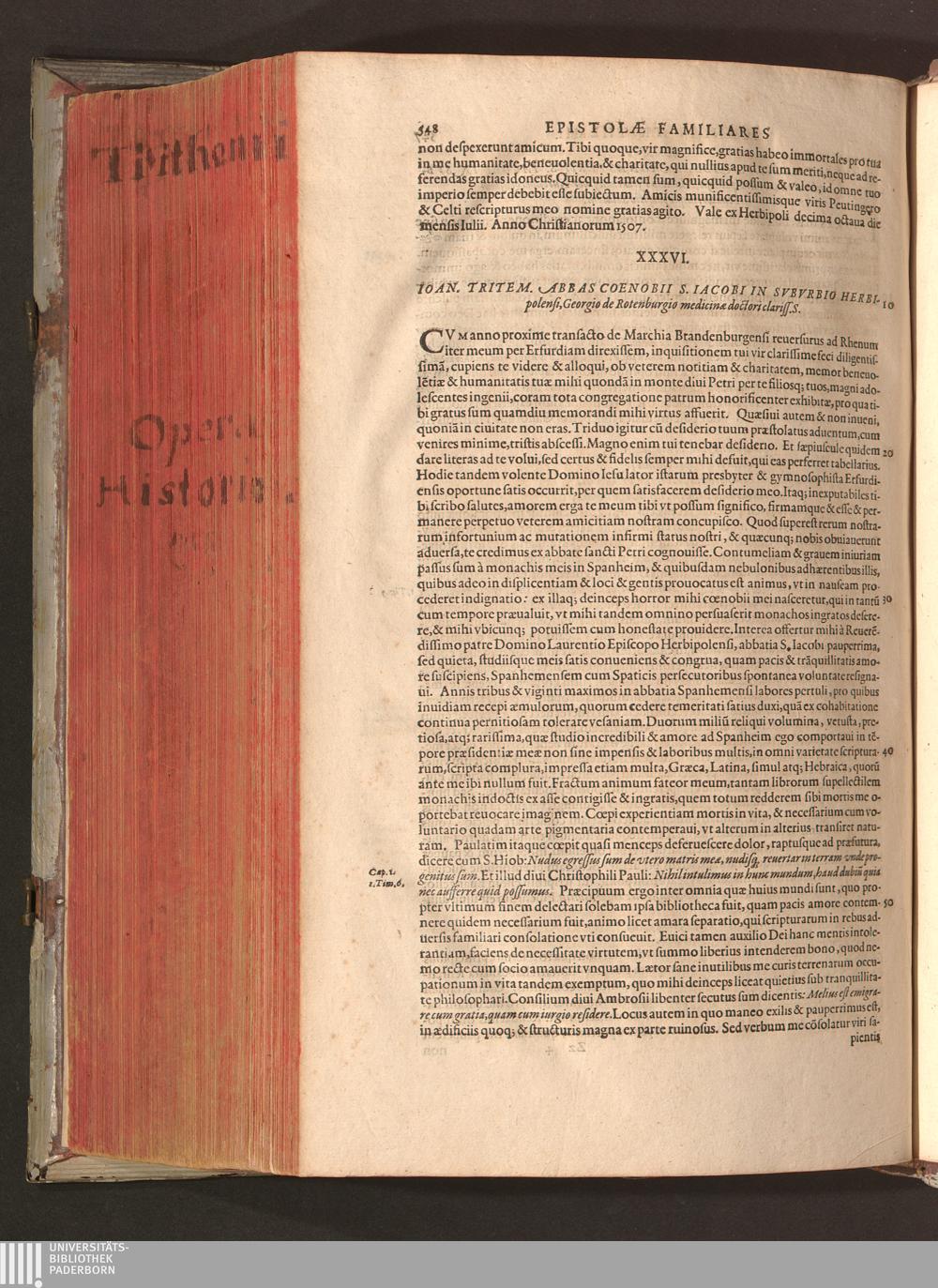 2 (1601) Iohannis Trithemii Spanheimensis Primo, Deinde D. Iacobi Maioris Apvd Herbipolin Abbatis, viri suo æuo doctissimi Secvndæ Partis Chronica Insignia Dvo : I. Coenobii Hirsavgiensis, Diœcesis Spirensis: eius fundationem & progressum ab Anno Christi DCCCXXX. vsque ad Annum MCCCLXX. II. Coenobii Spanheimensis, Diœcesis Moguntinensis: eius fundationem & progressum ab Anno Christi MCXXIIII. vsque ad Annum MDXXVI. vel potius res ab octo illis sæculis in tota Ecclesia & Imperio memorabiliter gestas, complectens; Qvorvm Privs Collatione Archetypi Ipsivs Auctoris manuscripti correctius & plenius; posterius verò istud nunc primùm è tenebris erutum, ob insignem vtilitatem optimâ fide in lucem editur; Accedunt Epistolæ eiusdem Familiares, ab excessu eius de cœnobio Spanheimensi ad Principes clarosque viros scriptæ, historiis eius æui referctæ