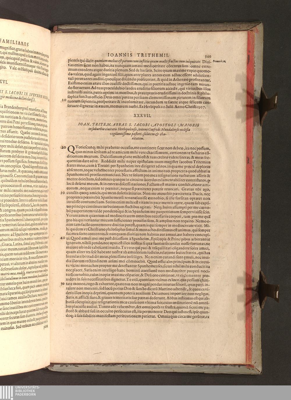 2 (1601) Iohannis Trithemii Spanheimensis Primo, Deinde D. Iacobi Maioris Apvd Herbipolin Abbatis, viri suo æuo doctissimi Secvndæ Partis Chronica Insignia Dvo : I. Coenobii Hirsavgiensis, Diœcesis Spirensis: eius fundationem & progressum ab Anno Christi DCCCXXX. vsque ad Annum MCCCLXX. II. Coenobii Spanheimensis, Diœcesis Moguntinensis: eius fundationem & progressum ab Anno Christi MCXXIIII. vsque ad Annum MDXXVI. vel potius res ab octo illis sæculis in tota Ecclesia & Imperio memorabiliter gestas, complectens; Qvorvm Privs Collatione Archetypi Ipsivs Auctoris manuscripti correctius & plenius; posterius verò istud nunc primùm è tenebris erutum, ob insignem vtilitatem optimâ fide in lucem editur; Accedunt Epistolæ eiusdem Familiares, ab excessu eius de cœnobio Spanheimensi ad Principes clarosque viros scriptæ, historiis eius æui referctæ