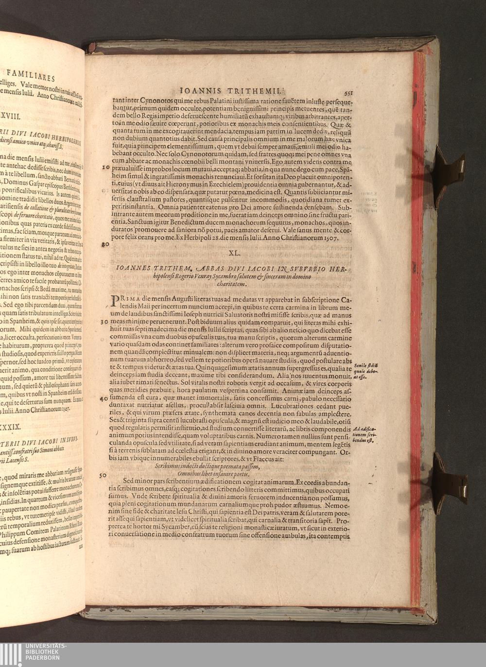2 (1601) Iohannis Trithemii Spanheimensis Primo, Deinde D. Iacobi Maioris Apvd Herbipolin Abbatis, viri suo æuo doctissimi Secvndæ Partis Chronica Insignia Dvo : I. Coenobii Hirsavgiensis, Diœcesis Spirensis: eius fundationem & progressum ab Anno Christi DCCCXXX. vsque ad Annum MCCCLXX. II. Coenobii Spanheimensis, Diœcesis Moguntinensis: eius fundationem & progressum ab Anno Christi MCXXIIII. vsque ad Annum MDXXVI. vel potius res ab octo illis sæculis in tota Ecclesia & Imperio memorabiliter gestas, complectens; Qvorvm Privs Collatione Archetypi Ipsivs Auctoris manuscripti correctius & plenius; posterius verò istud nunc primùm è tenebris erutum, ob insignem vtilitatem optimâ fide in lucem editur; Accedunt Epistolæ eiusdem Familiares, ab excessu eius de cœnobio Spanheimensi ad Principes clarosque viros scriptæ, historiis eius æui referctæ
